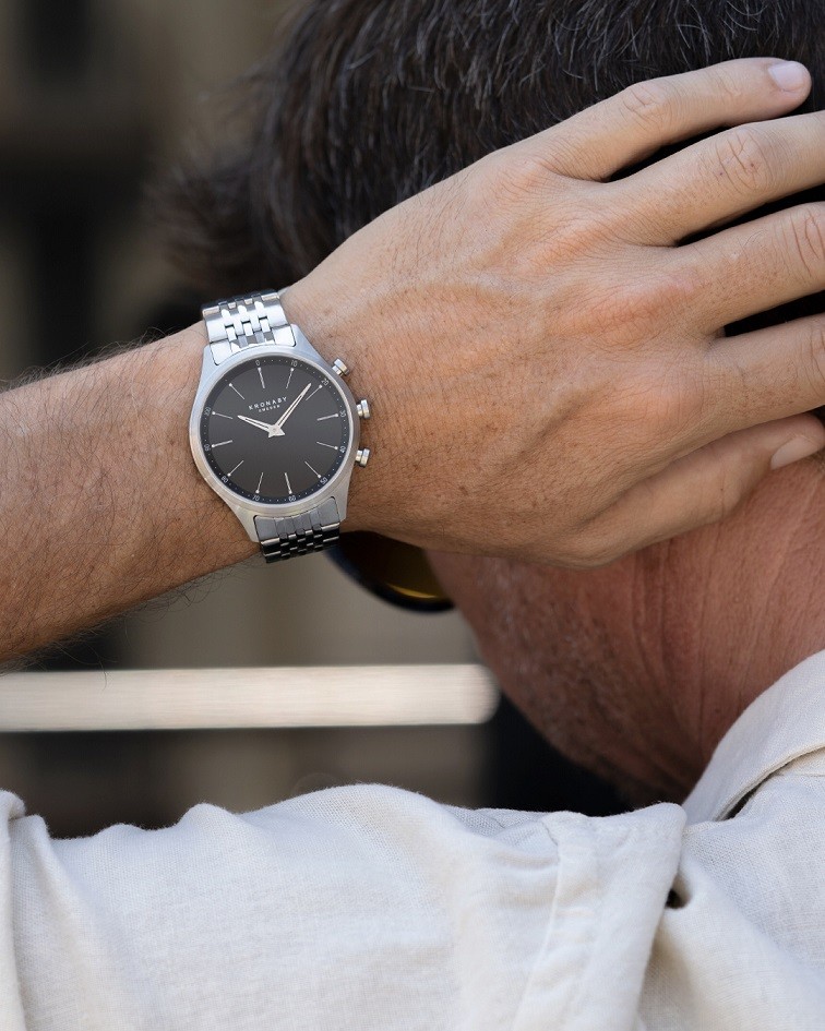 1) Ruszaj się – w związku z coraz większą liczbą siedzących zajęć ważna jest odpowiednia ilość ruchu. Zegarek Kronaby przypomni Ci, że czas wstać i zacząć się poruszać, jeśli długo siedzisz.