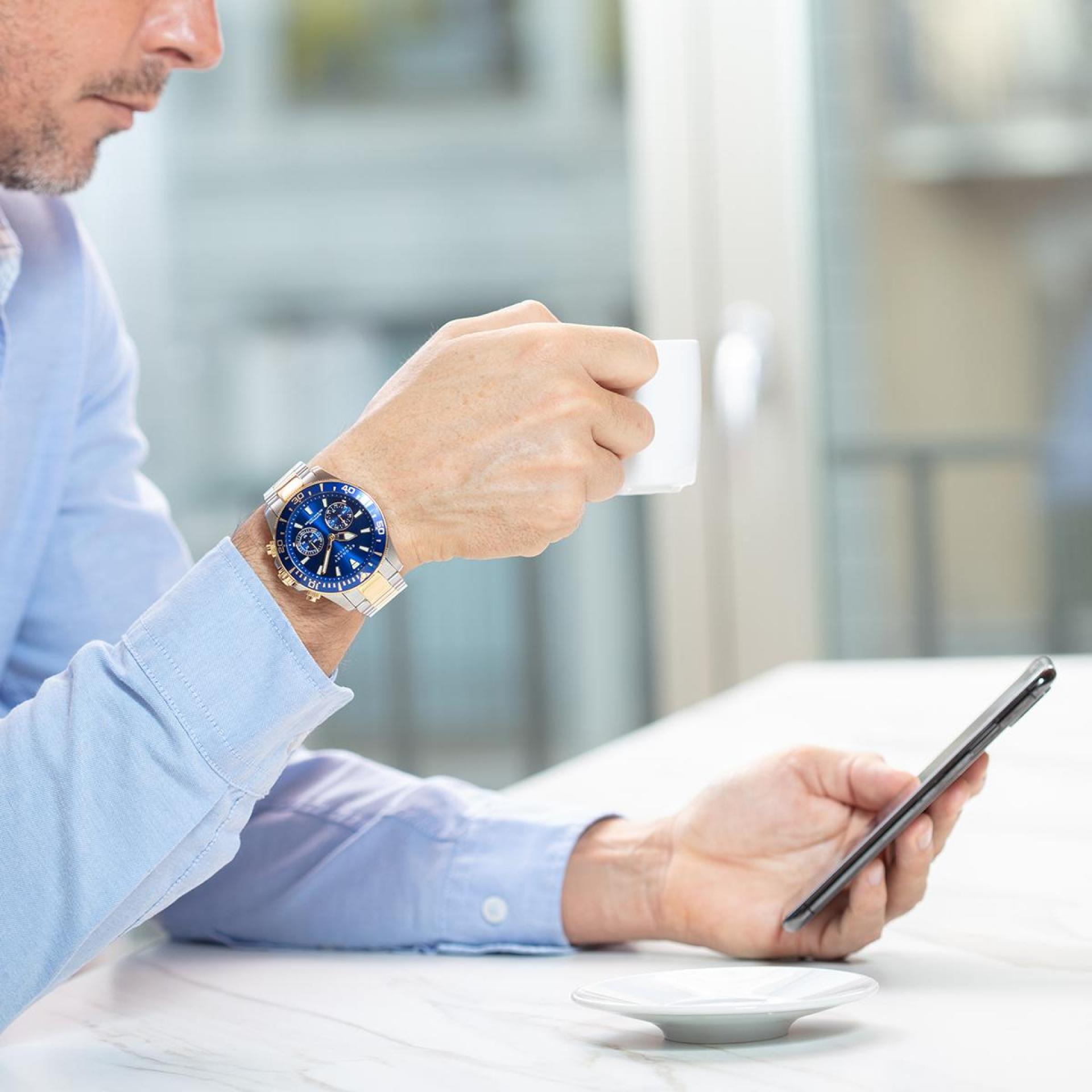 2) Automatyczna strefa czasowa – zawsze dokładny czas, gdziekolwiek jesteś na świecie. Zegarek Kronaby zawsze ustawi właściwą godzinę, zgodnie ze strefą czasową, w której aktualnie się znajdujesz.