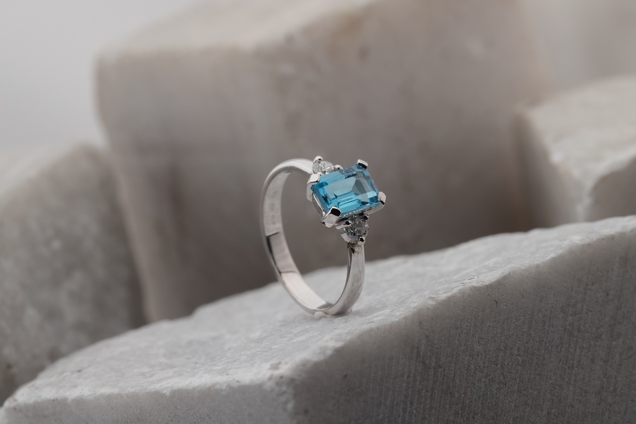 Obrazek Pierścionek LOEE Palette Diamonds z białego złota z diamentami i topazem