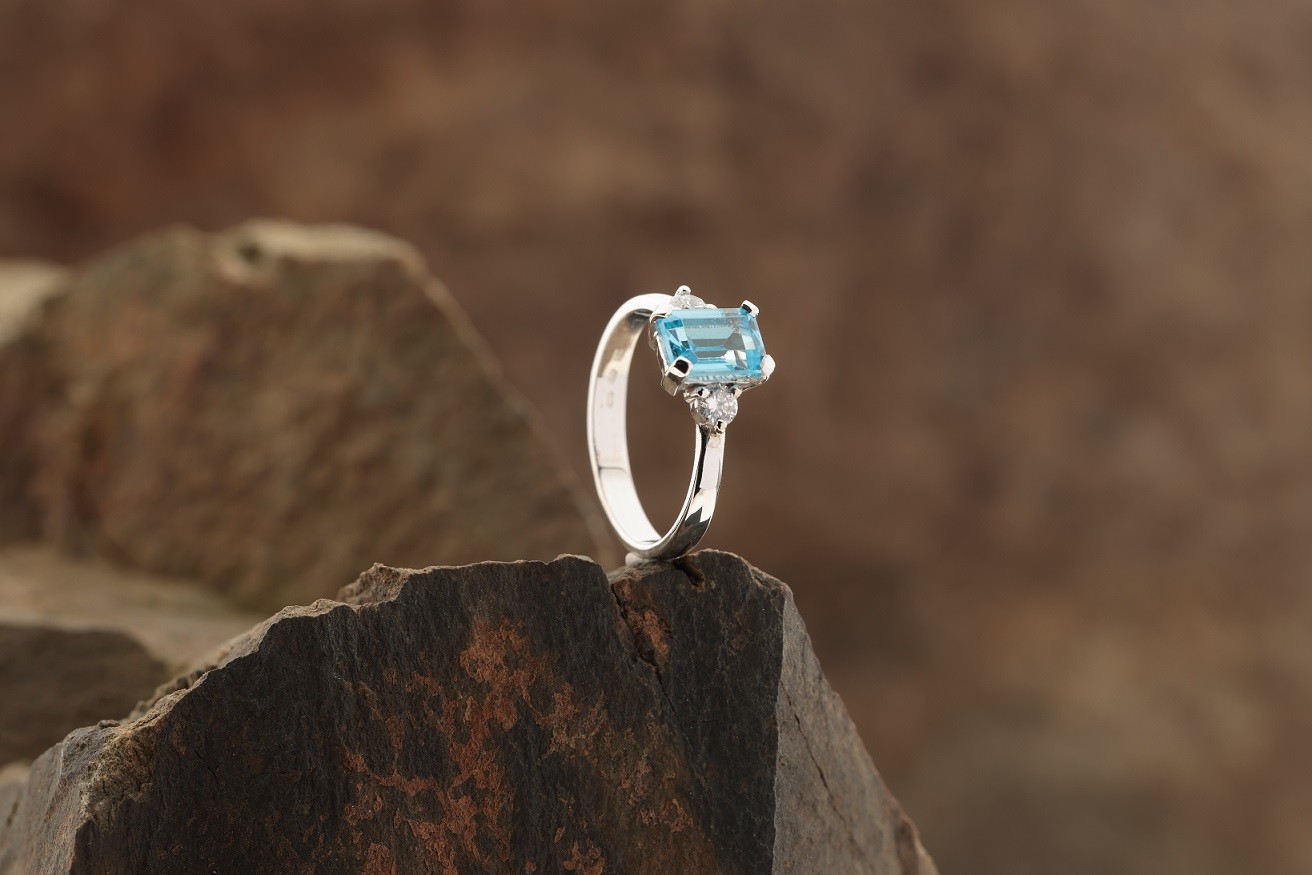 Pierścionek LOEE Palette Diamonds z białego złota z diamentami i topazem R1W0140B.59.TO
