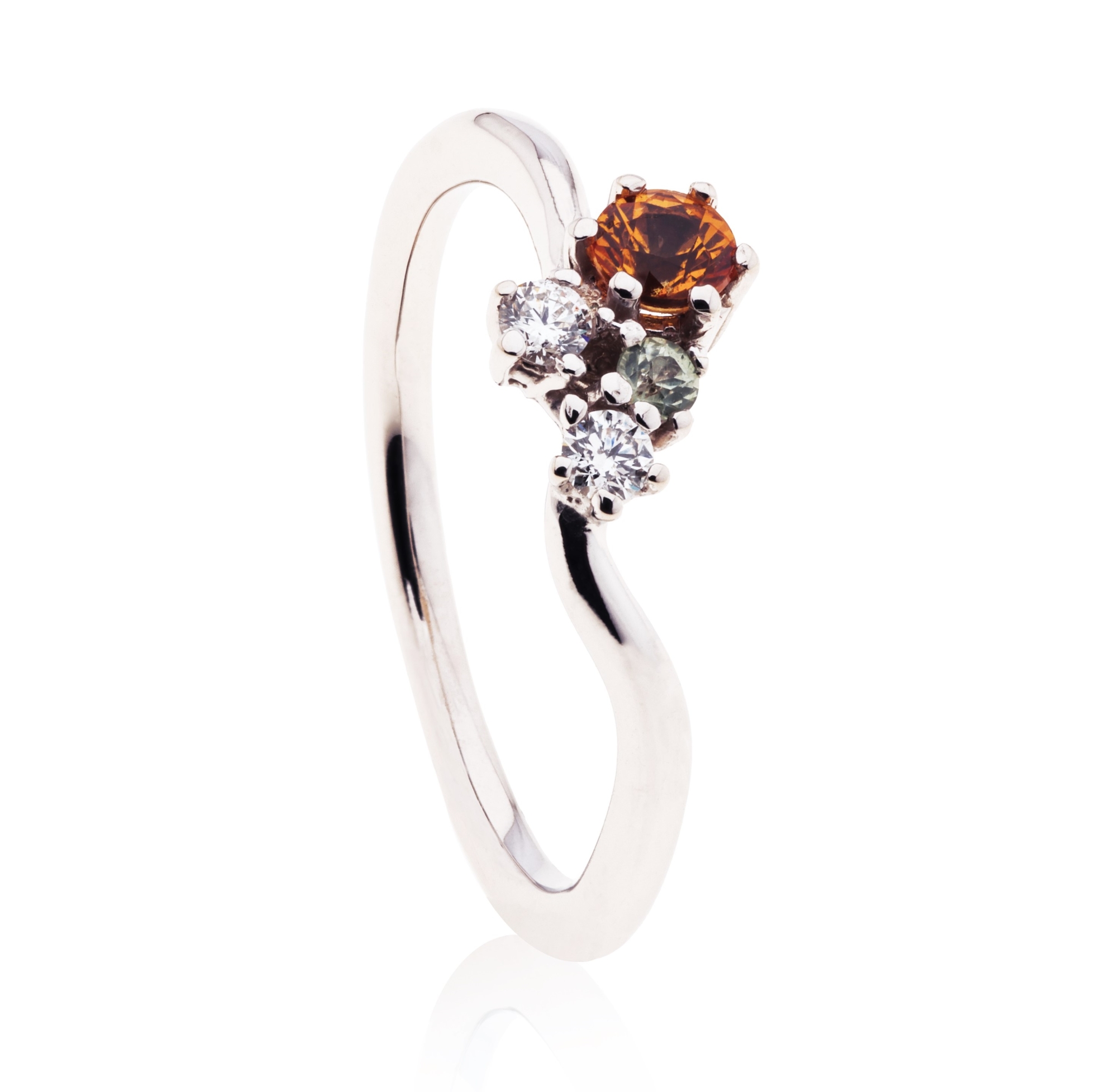 Pierścionek LOEE Sparkle z białego złota z diamentami i szafirami R1W0147B.54.MS