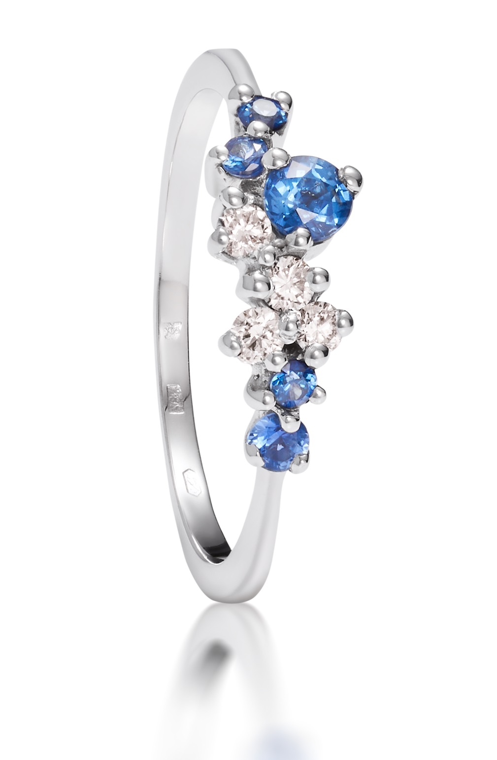 Pierścionek LOEE Sparkle z białego złota z diamentami i szafirami R1W0150B.53.MSB