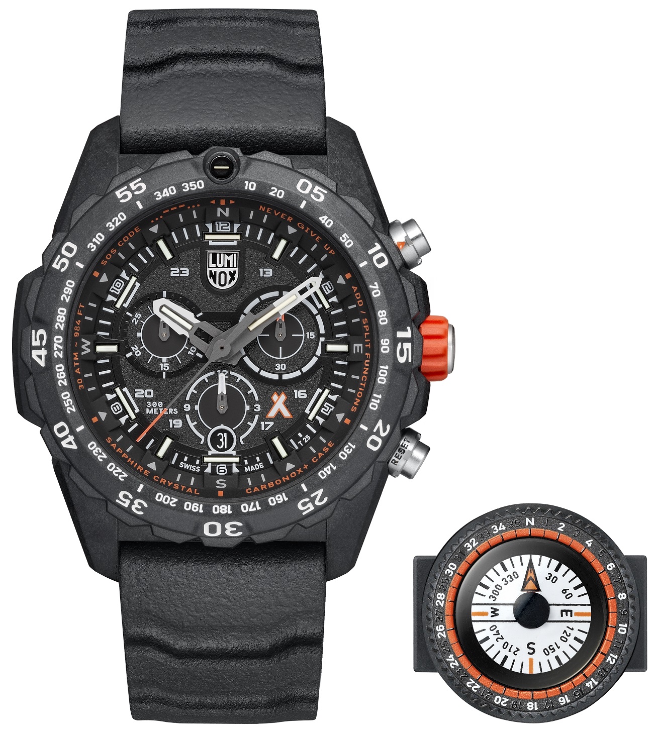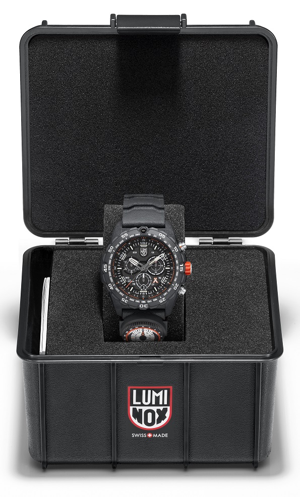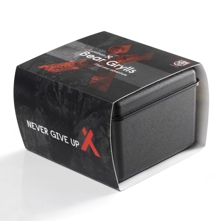 Te szczególne parametry są połączone z legendarną zdolnością zegarków Luminox do działania nawet w ekstremalnych sytuacjach, co sprawia, że ​​współpraca z Bear Grylls jest idealna pod każdym względem. Motto Luminox, „Every Second Counts”, idealnie pasuje również do Grylls „Never Give Up”. Zegarek jest wyposażony w pomarańczowy pasek z kompasem a koperta wykonana została z opatentowanego materiału CARBONOX™+ co czyni zegarek bardzo wytrzymałym. Tarczę zegarka przykrywa szafirowe szkłoszkło z powłoką antyrefleksyjną.