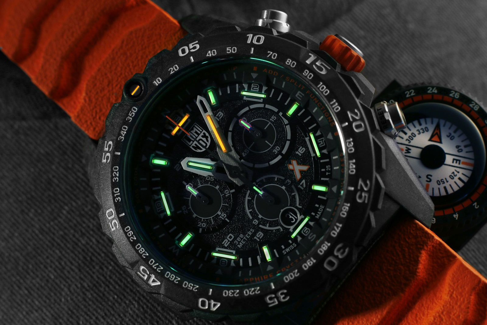 Te szczególne parametry są połączone z legendarną zdolnością zegarków Luminox do działania nawet w ekstremalnych sytuacjach, co sprawia, że ​​współpraca z Bear Grylls jest idealna pod każdym względem. Motto Luminox, „Every Second Counts”, idealnie pasuje również do Grylls „Never Give Up”. Zegarek jest wyposażony w pomarańczowy pasek z kompasem a koperta wykonana została z opatentowanego materiału CARBONOX™+ co czyni zegarek bardzo wytrzymałym. Tarczę zegarka przykrywa szafirowe szkłoszkło z powłoką antyrefleksyjną.