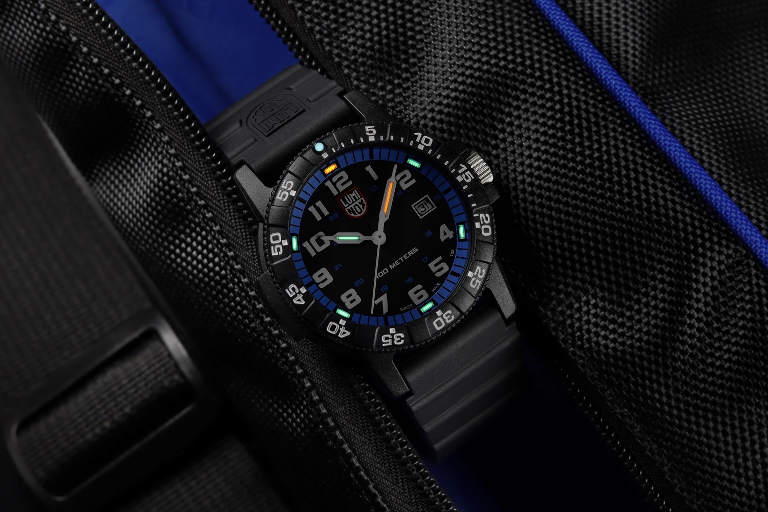 Najnowsze zegarki Luminox XS.0324 Leatherback Sea Turtle mają 44-milimetrową kopertę, dekiel i pierścień wykonane z CARBONOX™. Nowy zegarek do nurkowania z paskiem PU i klamrą ze stali nierdzewnej jest wodoodporny do 10 ATM i przeznaczony do użytku na morzu i lądzie.