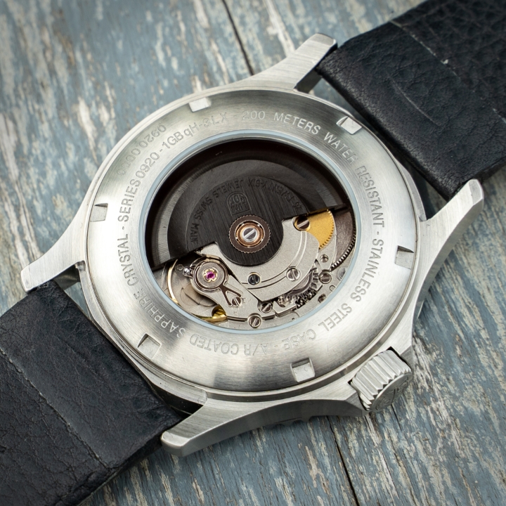 Wodoodporny do 200 metrów, wyposażony w szafirowe szkłoszkło z antyrefleksem, zakręcaną koronkę i dekiel.