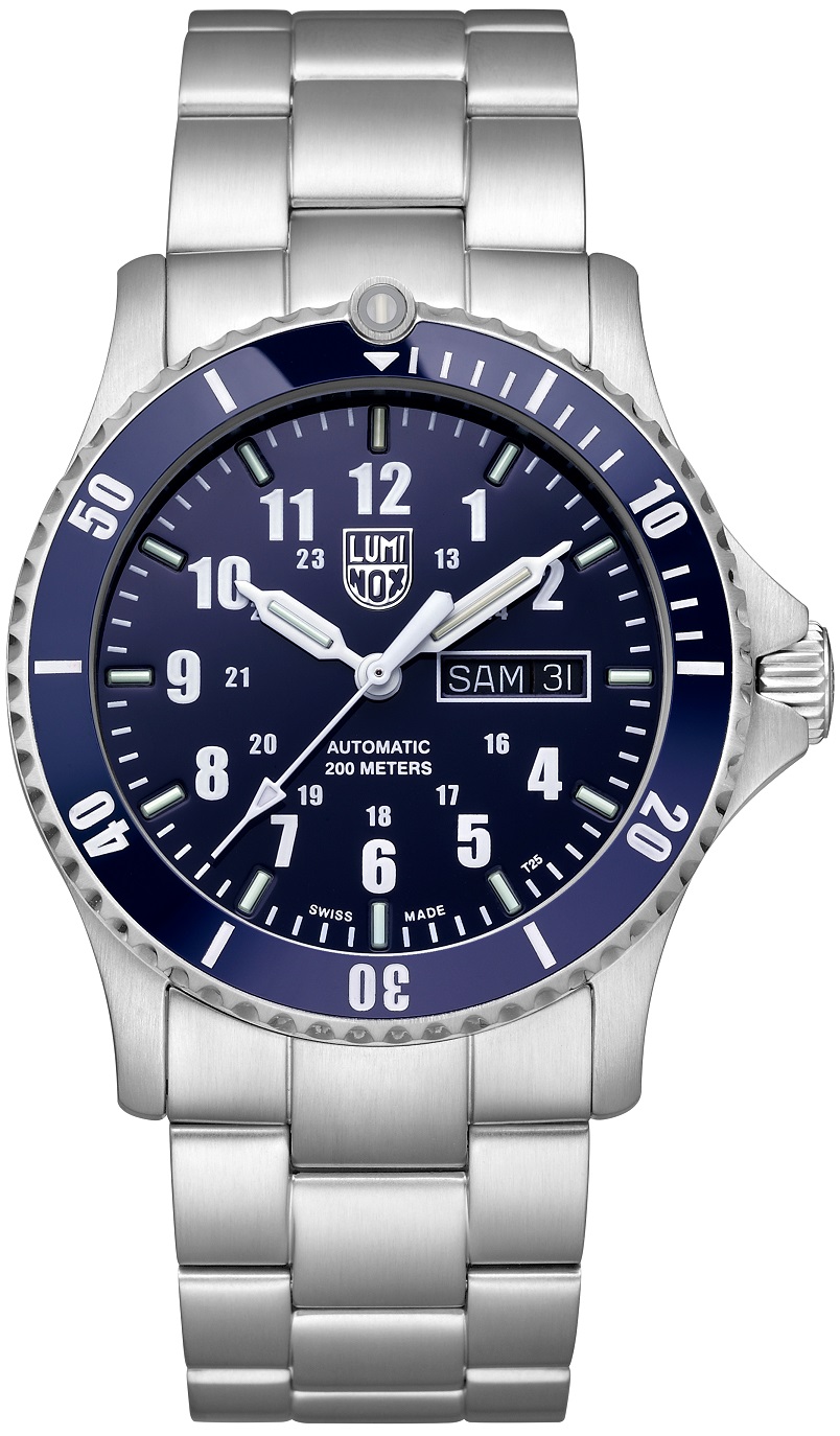 Luminox XS.0924 Automatic Sport Timer napędza szwajcarski automatyczny mechanizm SELLITA SW 220-1 z funkcją day date. 42-milimetrowa koperta ze stali nierdzewnej z obrotowym pierścieniem z wkładką z ceramiki jest połączona z bransoletą wykonaną ze stali 316L.