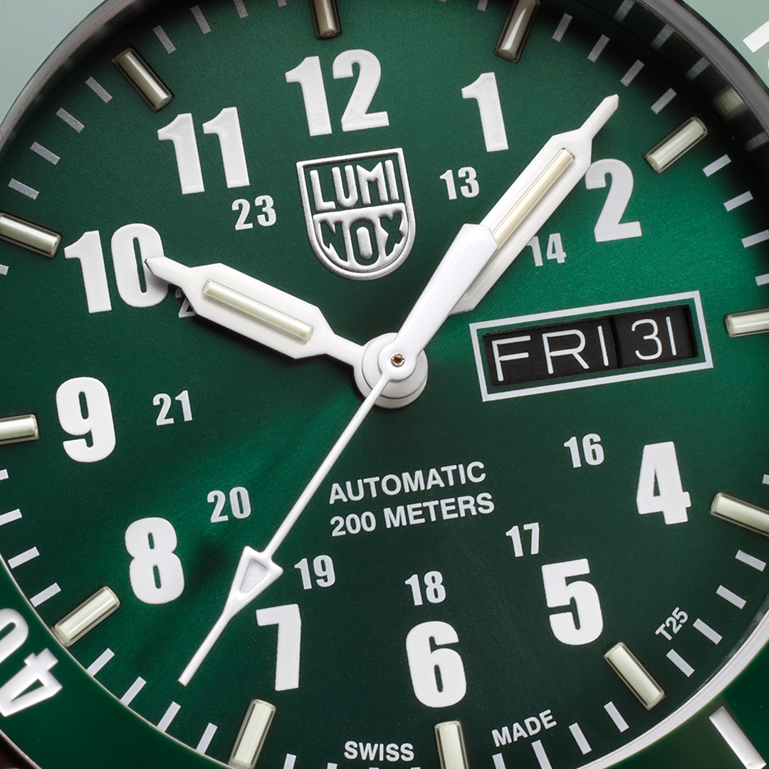 Luminox XS.0937 Automatic Sport Timer napędza szwajcarski automatyczny mechanizm SELLITA SW 220-1 z funkcją day date. 42-milimetrowa koperta ze stali nierdzewnej z obrotowym pierścieniem z wkładką z ceramiki jest połączona z bransoletą wykonaną ze stali 316L.