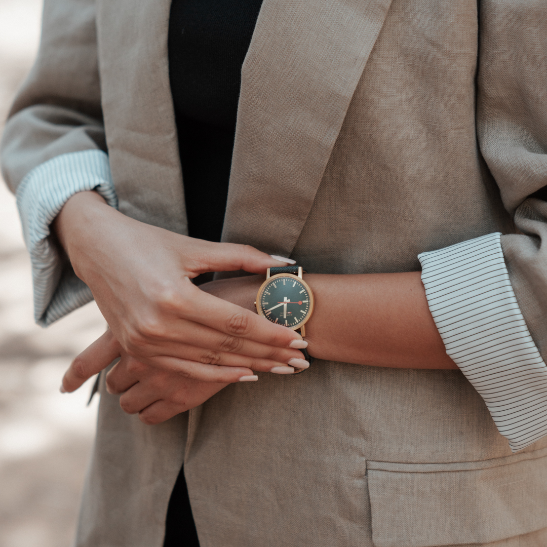 MONDAINE Classic A660.30314.60SBS Mechanizm: Kwarcowy Rozmiar koperty: 36 mm Materiał paska: Materiał Wodoodporność: 30 m / 3 ATM 1 119 zł Produkt niedostępny Pokrewne produkty 1 119 zł 1 119 zł 1 119 zł 1 119 zł 1 119 zł 1 159 zł 1 119 zł DARMOWA DOSTAWAInPost Paczkomat® 24/7, kurier InPost, DHL BATERIA+ GRATISdożywotnia gwarancja wymiany baterii ODBIÓR OSOBISTYw salonach w Warszawie, Wrocławiu, Poznaniu i Łodzi AUTORYZOWANY SPRZEDAWCAgwarancja oryginalności wszystkich produktów CENTRUM SERWISOWEnajnowocześniejsze w Polsce 60 DNI NA ZWROTbez pośpiechu i problemów Dodaj do listy porównywania Usuń produkt z porównania Zapytanie o produkt Dodaj do listy życzeń SMS Parametry Kolekcja Marka 1 119 zł Specyfikacja produktu Płeć Damskie Styl zegarka sportowy Tarcza zegarka Analogowa Kształt tarczy zegarka Okrągły Kolor tarczy zegarka Zielony Szkło Mineralne Materiał koperty Stal, PVD Wodoodporność 30 m / 3 ATM Mechanizm Kwarcowy Kaliber mechanizmu Ronda 513 Rozmiar Rozmiar koperty 36 mm Grubość koperty 7,5 mm Pasek / Bransoleta Materiał paska Materiał Kolor paska Zielony Filtr Kolor Paska Zielony Zapięcie paska Klasyczna Szerokość paska 18 mm MONDAINE CLASSIC Od ponad 60 lat marce Mondaine przyświeca prosta idea: forma i funkcja muszą pozostawać w doskonałej harmonii. Wyrafinowanie i prostota to elementy, które tworzą prawdziwie kultowy projekt. A ta kolekcja jest wynikiem podstawowego pomysłu. Unikalny i ponadczasowy design, innowacyjność i szwajcarskie podejście do wysokiej jakości wykonania zapewniają niezawodność na całe życie. Zegarki Mondiane to kwintesencja szwajcarskiej precyzji i minimalistycznego designu. Inspirowane prostymi, czytelnymi zegarami szwajcarskich kolei, oferują nie tylko dokładny pomiar czasu, ale także ponadczasową elegancję.