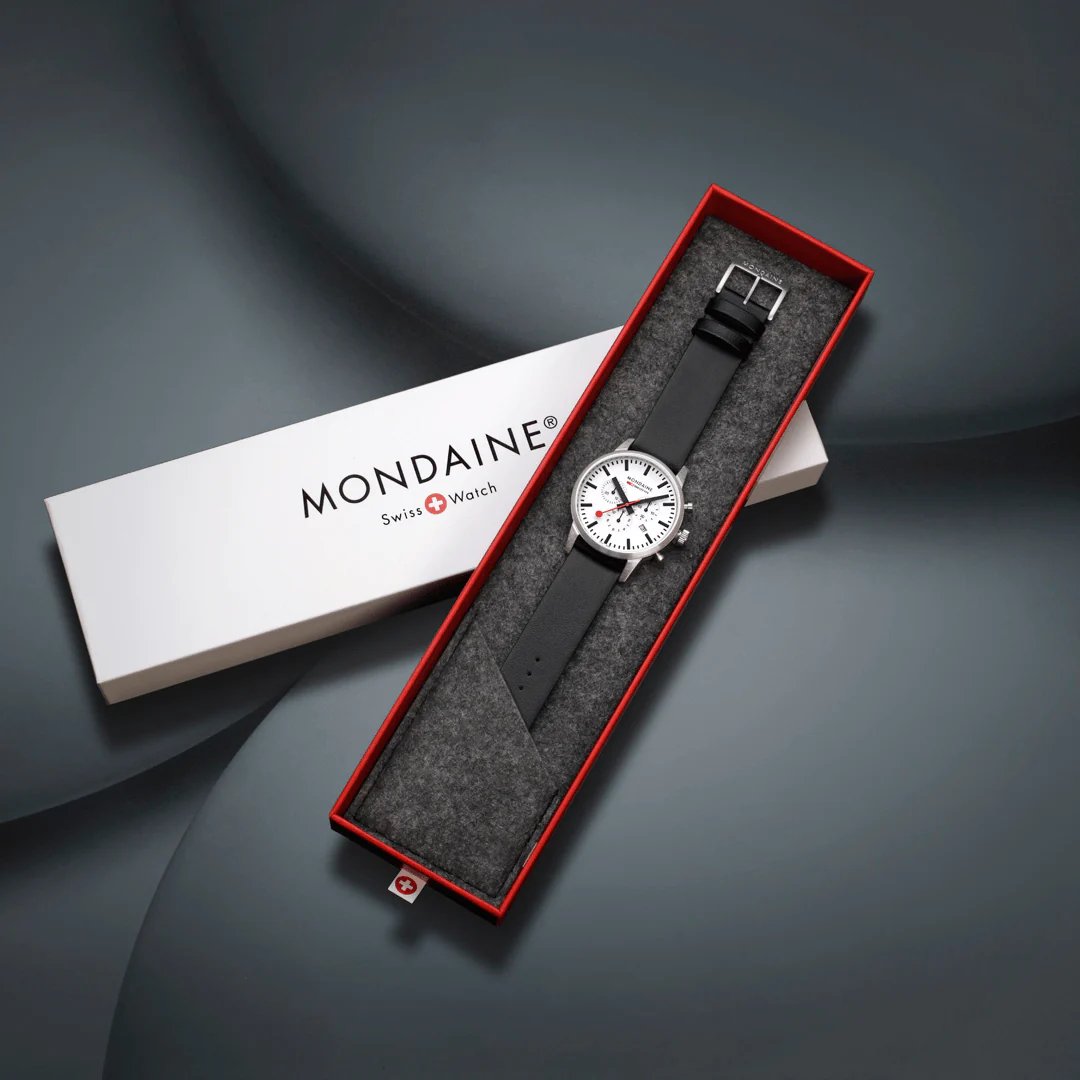 Klasyczny. Wyrafinowany. Męski. Kolekcja Neo oferuje minimalistyczny wygląd i charakterystyczną czerwoną wskazówkę, z której słynie MONDAINE, a jednocześnie oferuje nową odsłonę z trzema pomocniczymi tarczami w różnych kombinacjach kolorystycznych i integracją funkcji chronografu. Seria wprowadza nowy kształt tarczy i tworzy prawdziwie ponadczasowy wygląd.