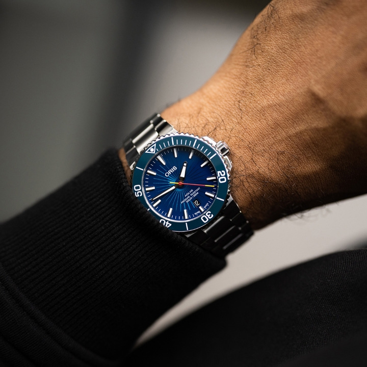 Kolekcja zegarków nurkowych Aquis oferuje prawdziwą funkcjonalność w innowacyjnym opakowaniu, dzięki połączeniu przemyślanego projektu, wysokiej jakości materiałów i dopasowanych funkcji. Rezultatem rozległych badań i wspólnego tworzenia, Oris Aquis to w pełni funkcjonalna seria zegarków, która nie idzie na kompromisy i czuje się jak w domu w miejskiej dżungli jak i będąc głęboko pod falami.
