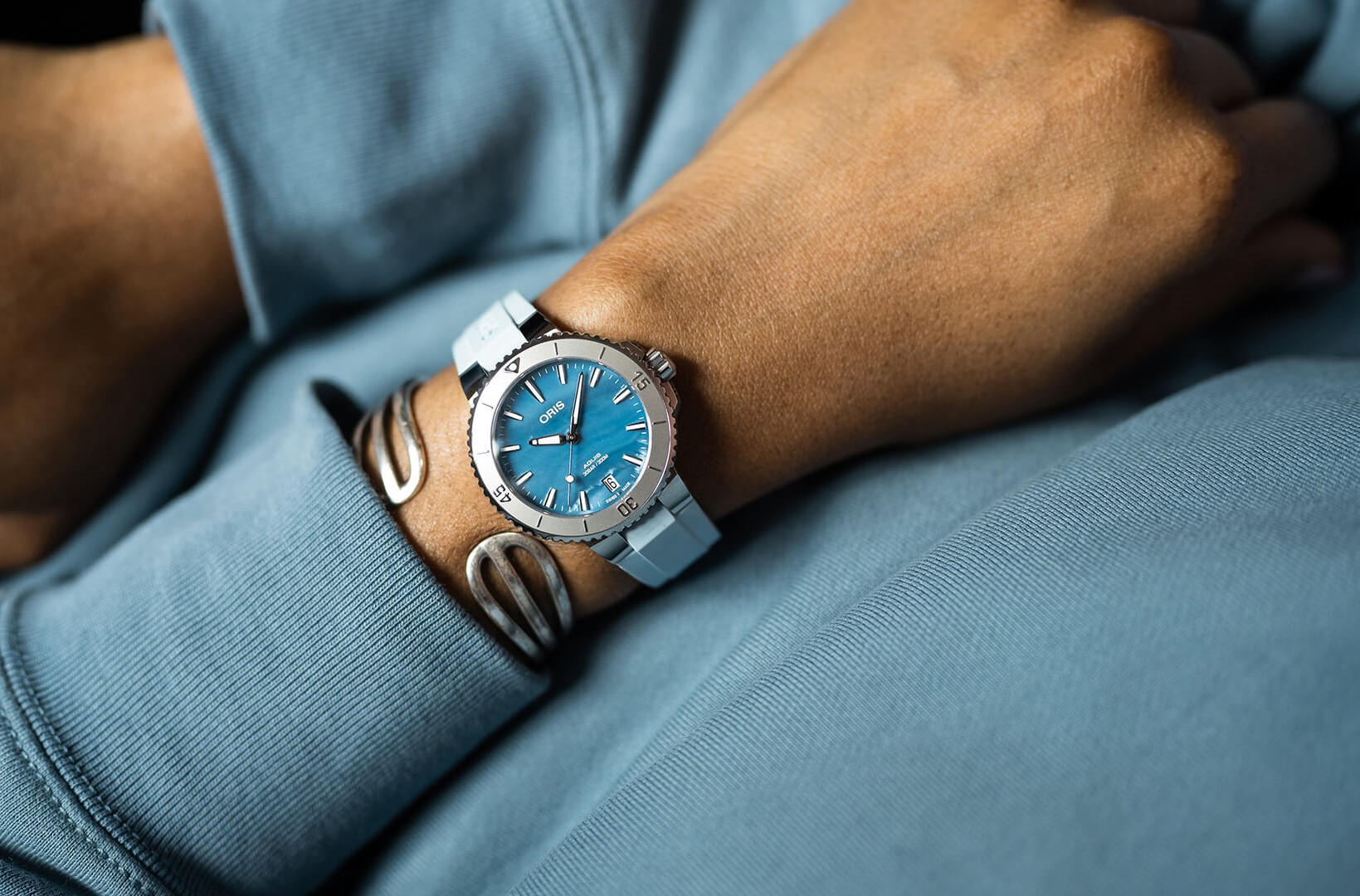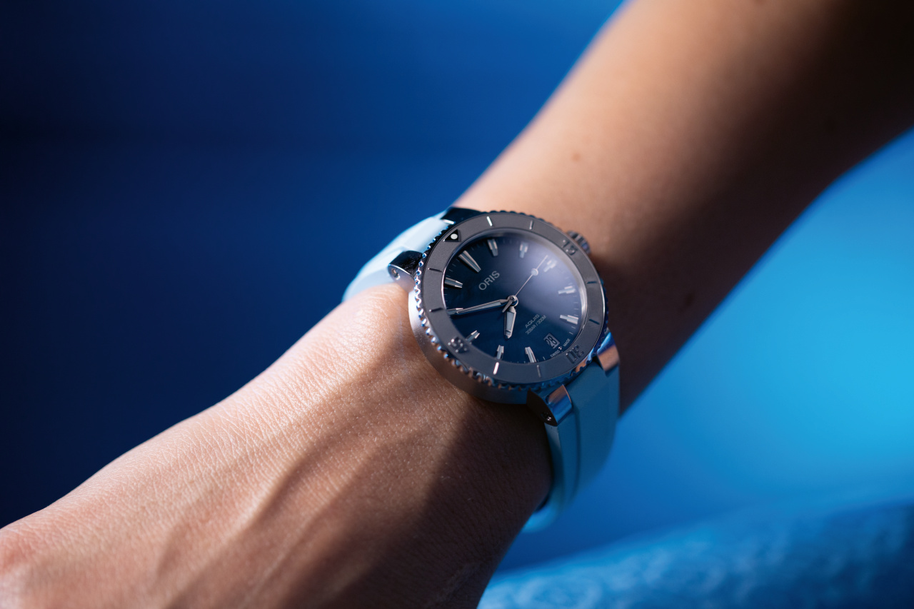 Kolekcja zegarków nurkowych Aquis oferuje prawdziwą funkcjonalność w innowacyjnym opakowaniu, dzięki połączeniu przemyślanego projektu, wysokiej jakości materiałów i dopasowanych funkcji. Rezultatem rozległych badań i wspólnego tworzenia, Oris Aquis to w pełni funkcjonalna seria zegarków, która nie idzie na kompromisy i czuje się jak w domu w miejskiej dżungli jak i będąc głęboko pod falami.