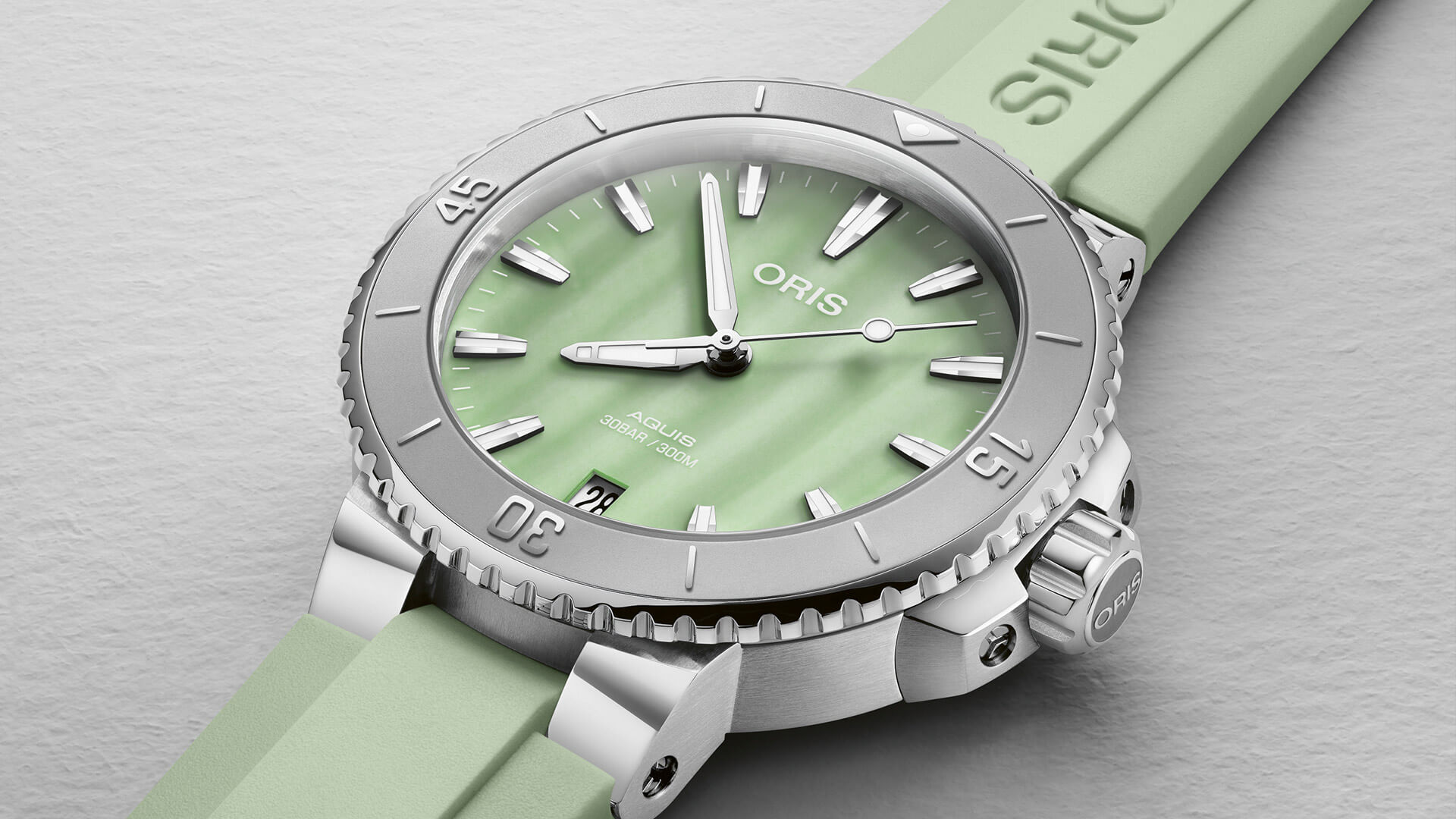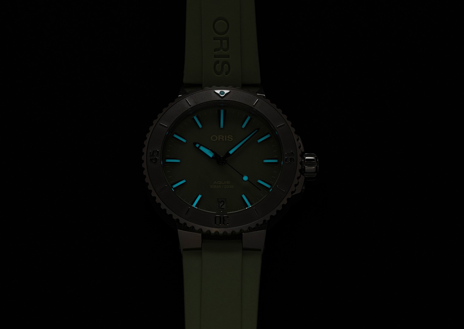 Kolekcja zegarków nurkowych Aquis oferuje prawdziwą funkcjonalność w innowacyjnym opakowaniu, dzięki połączeniu przemyślanego projektu, wysokiej jakości materiałów i dopasowanych funkcji. Rezultatem rozległych badań i wspólnego tworzenia, Oris Aquis to w pełni funkcjonalna seria zegarków, która nie idzie na kompromisy i czuje się jak w domu w miejskiej dżungli jak i będąc głęboko pod falami.