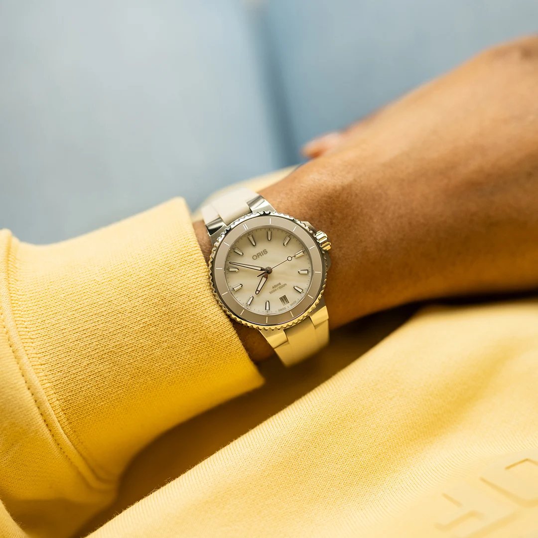 Kolekcja zegarków nurkowych Aquis oferuje prawdziwą funkcjonalność w innowacyjnym opakowaniu, dzięki połączeniu przemyślanego projektu, wysokiej jakości materiałów i dopasowanych funkcji. Rezultatem rozległych badań i wspólnego tworzenia, Oris Aquis to w pełni funkcjonalna seria zegarków, która nie idzie na kompromisy i czuje się jak w domu w miejskiej dżungli jak i będąc głęboko pod falami.