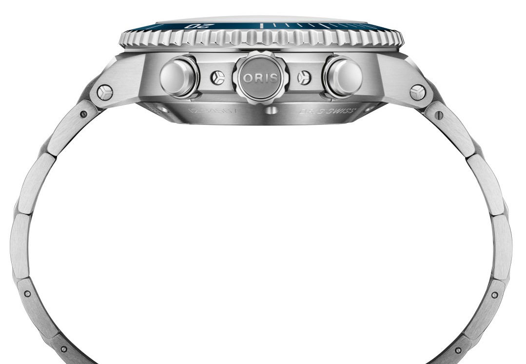 Nowy Oris chronograf 01 771 7793 4155-07 8 23 01PEB ma wspólne cechy z nową kolekcją Aquis Date i charakteryzuje się taką samą dbałością o szczegóły oraz tą samą liczbą ulepszeń w zakresie ergonomii, estetyki i wydajności. Koperta i ramka mają węższy profil, jak i bransoleta została nieco zwężona. Zachowano dobrze znaną koncepcję modelu Aquis jako zegarka o dużej wytrzymałości i do noszenia na co dzień - zakręcana koronka z zabezpieczeniem, jednokierunkowo obracający się bezel z ceramiczną wkładką, luminescencyjne detale, przezroczysty dekiel i wodoszczelność 30 ATM (300 metrów).