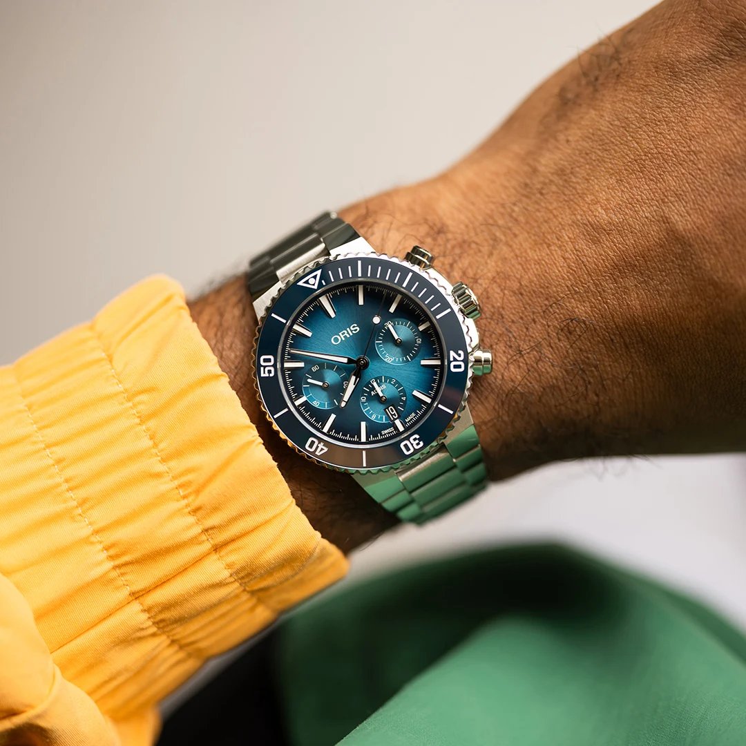 Kolekcja zegarków nurkowych Aquis oferuje prawdziwą funkcjonalność w innowacyjnym opakowaniu, dzięki połączeniu przemyślanego projektu, wysokiej jakości materiałów i dopasowanych funkcji. Rezultatem rozległych badań i wspólnego tworzenia, Oris Aquis to w pełni funkcjonalna seria zegarków, która nie idzie na kompromisy i czuje się jak w domu w miejskiej dżungli jak i będąc głęboko pod falami.