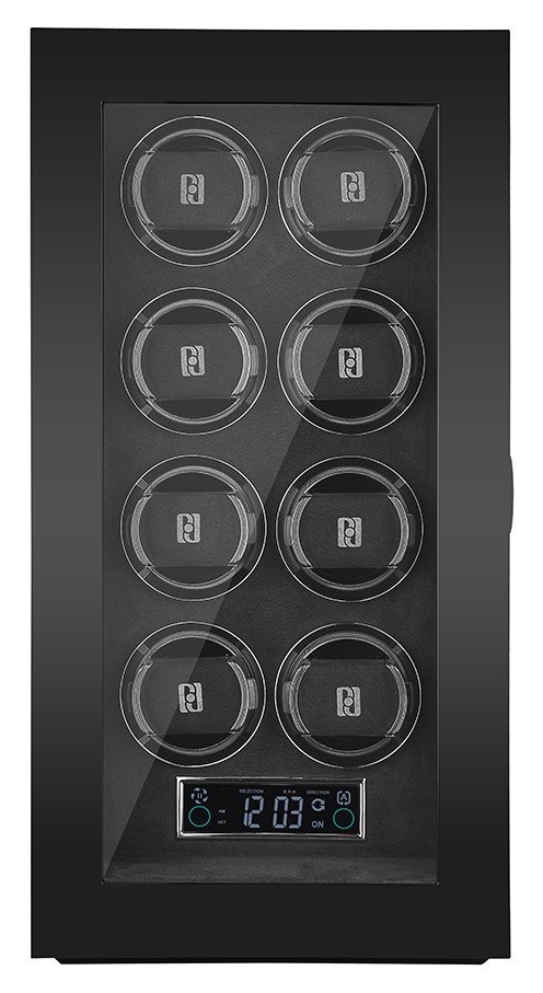 Rotomat firmy Paul Design na osiem zegarków posiada dotyk i zdalne sterowanie. Ręcznie robione pudełko jest wykończone w kolorze Black Apricot i jest wyposażone w podświetlenie LED i otwór na odcisk palca.