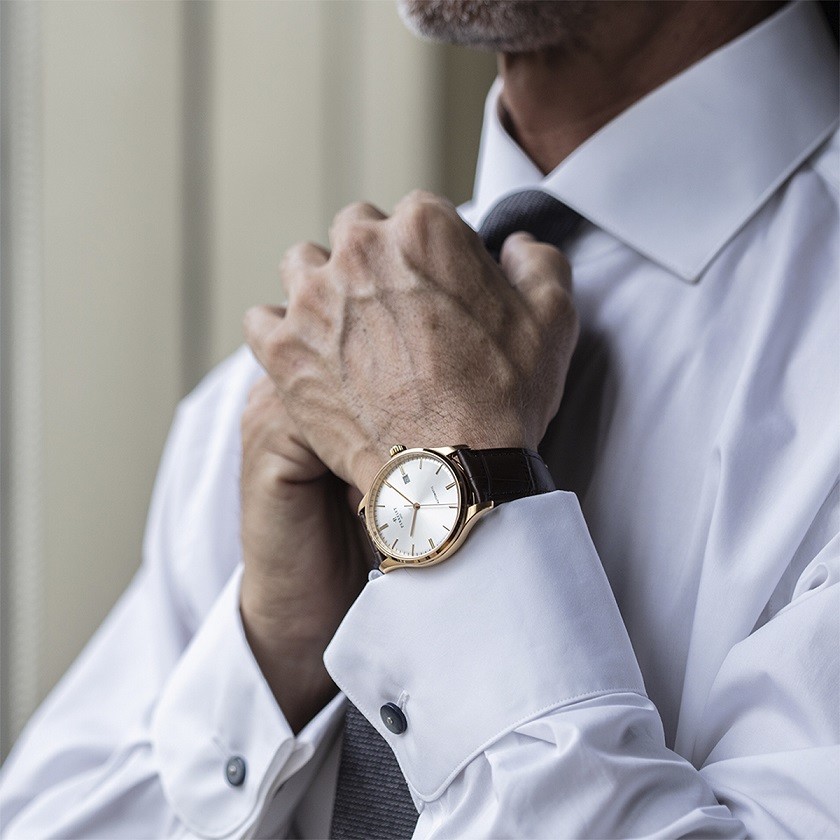 Czysta, minimalistyczna tarcza z trzema centralnymi wskazówkami. Modele dostępne są w stalowych kopertach o średnicy 39 lub 42 mm, z opcją pasków skórzanych lub bransolet metalowych – wszystko po to, by idealnie dopasować zegarek do codziennego rytmu właściciela.