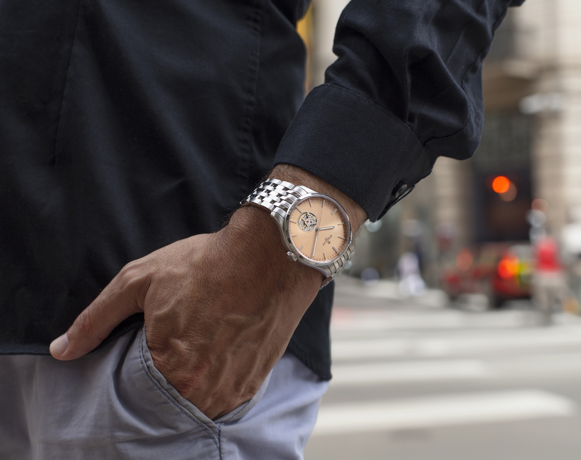 Czysta, minimalistyczna tarcza z trzema centralnymi wskazówkami. Modele dostępne są w stalowych kopertach o średnicy 39 lub 42 mm, z opcją pasków skórzanych lub bransolet metalowych – wszystko po to, by idealnie dopasować zegarek do codziennego rytmu właściciela.