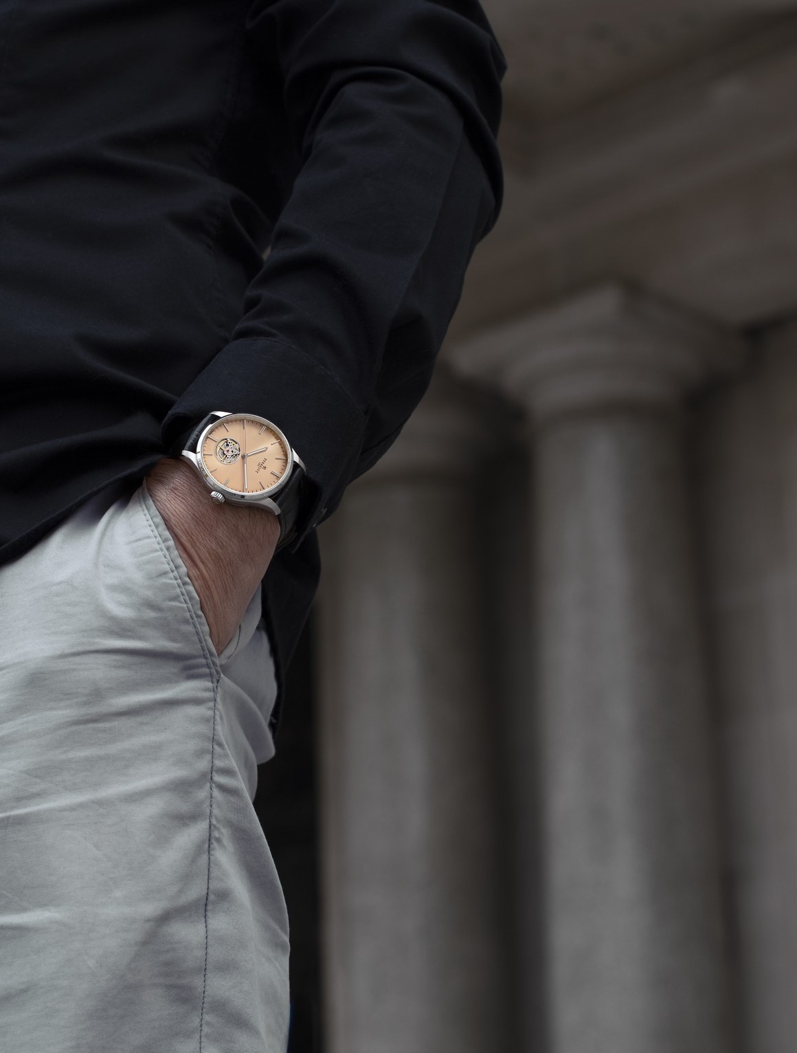 Czysta, minimalistyczna tarcza z trzema centralnymi wskazówkami. Modele dostępne są w stalowych kopertach o średnicy 39 lub 42 mm, z opcją pasków skórzanych lub bransolet metalowych – wszystko po to, by idealnie dopasować zegarek do codziennego rytmu właściciela.