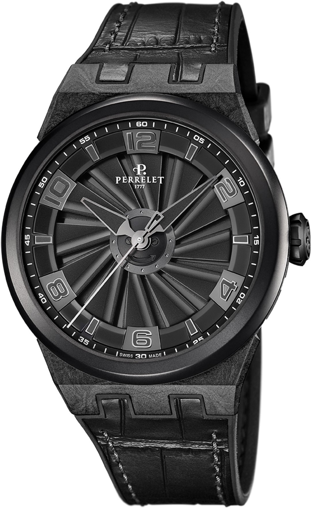 Włókna węglowe nigdy wcześniej nie były używane przez Perrelet - z wyjątkiem wyjątkowej „Turbiny Hope” stworzony na 9. aukcję charytatywną Only Watch w 2021 r. – jest obecnie używany w wielu nowych zegarkach sportowych Turbine, w tym w wersji Turbine Carbon Black Edition.