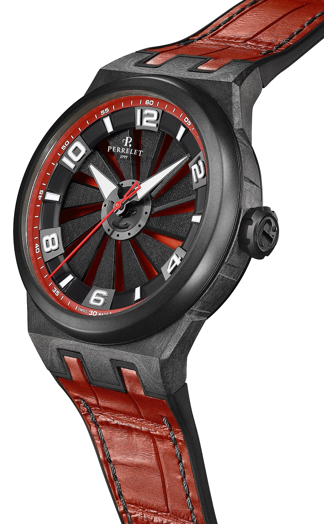 Kolekcja Perrelet Turbine to rewolucja w projektowaniu zegarków dzięki opatentowanemu systemowi turbiny na tarczy. Ten innowacyjny element sprawia, że ​​efekt wizualny tarczy zmienia się przy każdym ruchu nadgarstka, nadając zegarkowi dynamiczny charakter. Kolekcja obejmuje modele takie jak Turbine Skeleton, Turbine Yacht Diver, Turbine Chrono, Turbine Evo czy Turbine Titanium 41 z mniejszą kopertą.