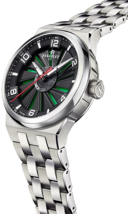 Kolekcja Perrelet Turbine to rewolucja w projektowaniu zegarków dzięki opatentowanemu systemowi turbiny na tarczy. Ten innowacyjny element sprawia, że ​​efekt wizualny tarczy zmienia się przy każdym ruchu nadgarstka, nadając zegarkowi dynamiczny charakter. Kolekcja obejmuje modele takie jak Turbine Skeleton, Turbine Yacht Diver, Turbine Chrono, Turbine Evo czy Turbine Titanium 41 z mniejszą kopertą.