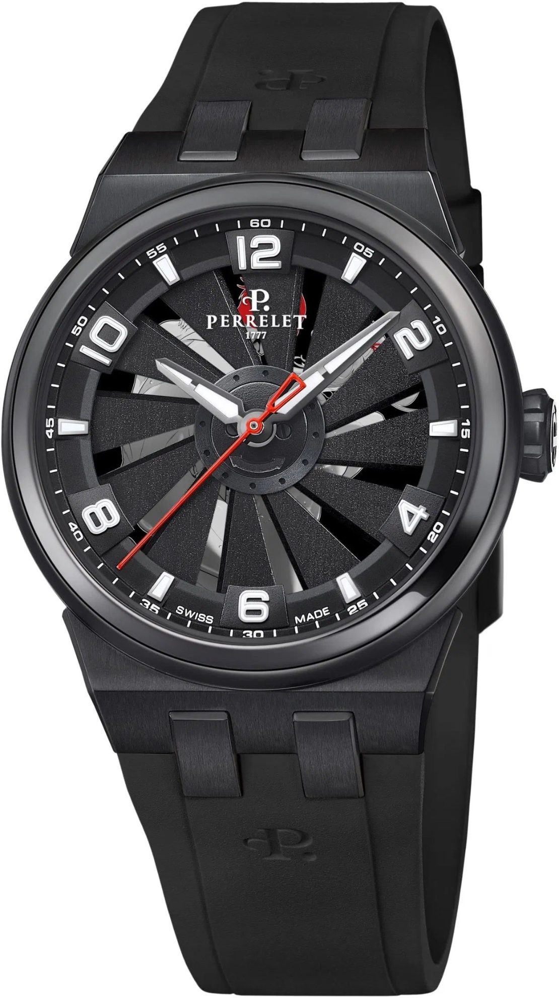 Kolekcja Perrelet Turbine to rewolucja w projektowaniu zegarków dzięki opatentowanemu systemowi turbiny na tarczy. Ten innowacyjny element sprawia, że ​​efekt wizualny tarczy zmienia się przy każdym ruchu nadgarstka, nadając zegarkowi dynamiczny charakter. Kolekcja obejmuje modele takie jak Turbine Skeleton, Turbine Yacht Diver, Turbine Chrono, Turbine Evo czy Turbine Titanium 41 z mniejszą kopertą.