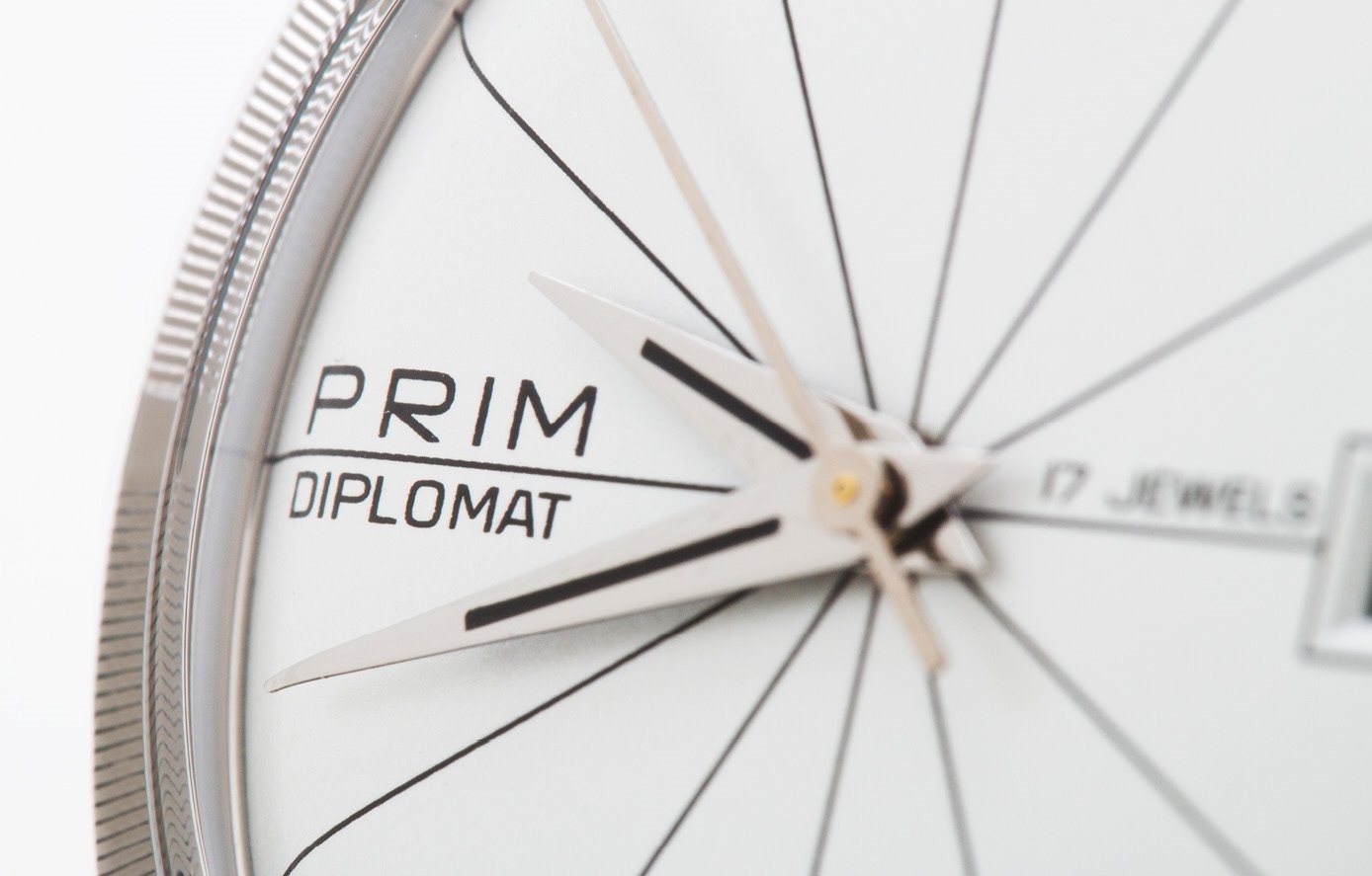 < mocna>DIPLOMAT 34 jest wierną repliką oryginalnego modelu wyprodukowanego pod koniec lat 60-tych ubiegłego wieku. Robocza nazwa tego zegarka w momencie jego powstania brzmiała PRIM REPRE. Zegarek ten od początku był postrzegany jako model premium w szerokiej ofercie zegarków PRIM.