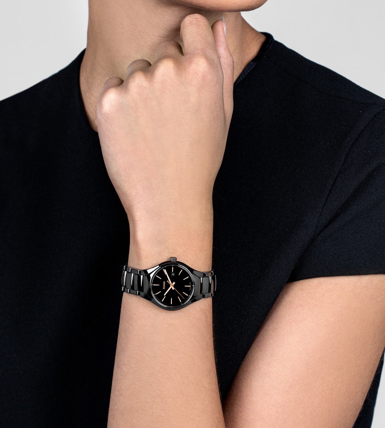 Niezawodny i wyjątkowy, Rado True stanowi idealne uzupełnienie szwajcarskiego mechanizmu automatycznego lub kwarcowego. Wykonany w całości z wytrzymałej ceramiki high-tech, zegarek zachowa swój blask przez lata, jest lekki i wygodny w noszeniu. Odświeżona, ponownie wprowadzona na rynek i nagrodzona w 2015 roku, kolekcja True wciąż robi wrażenie.