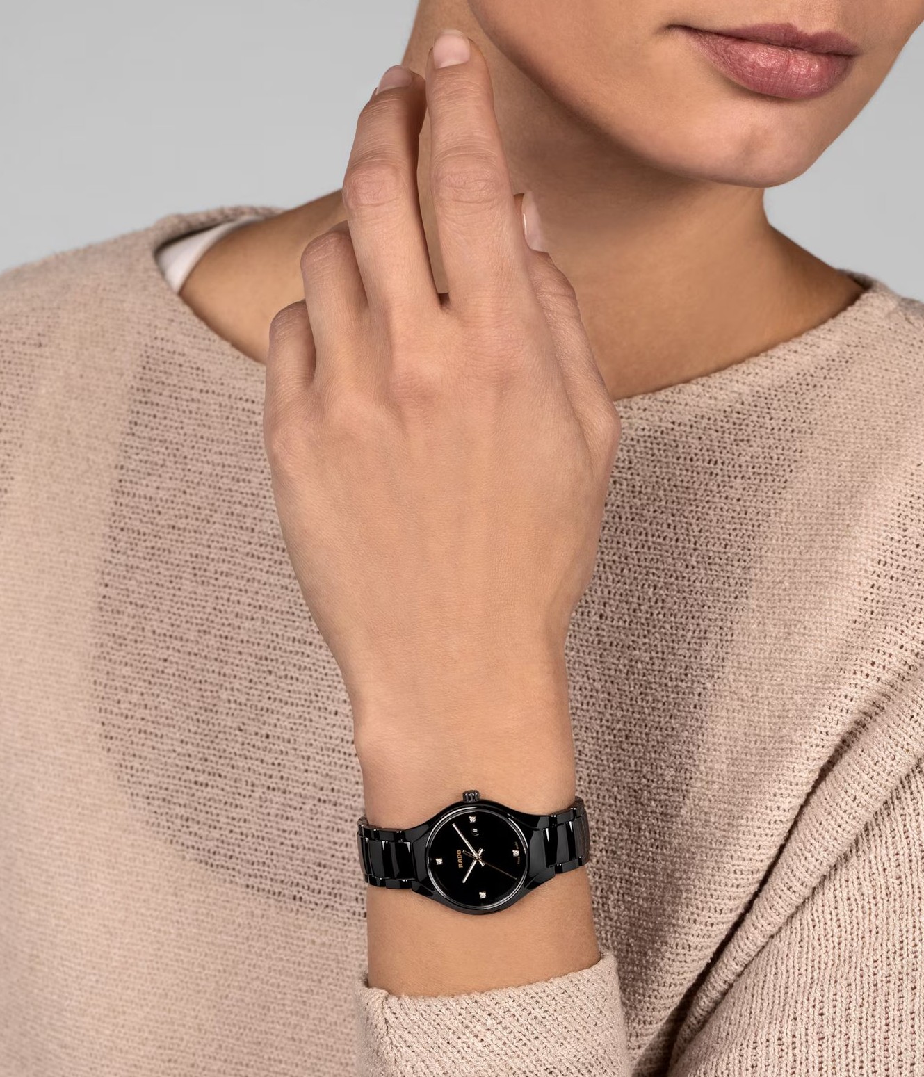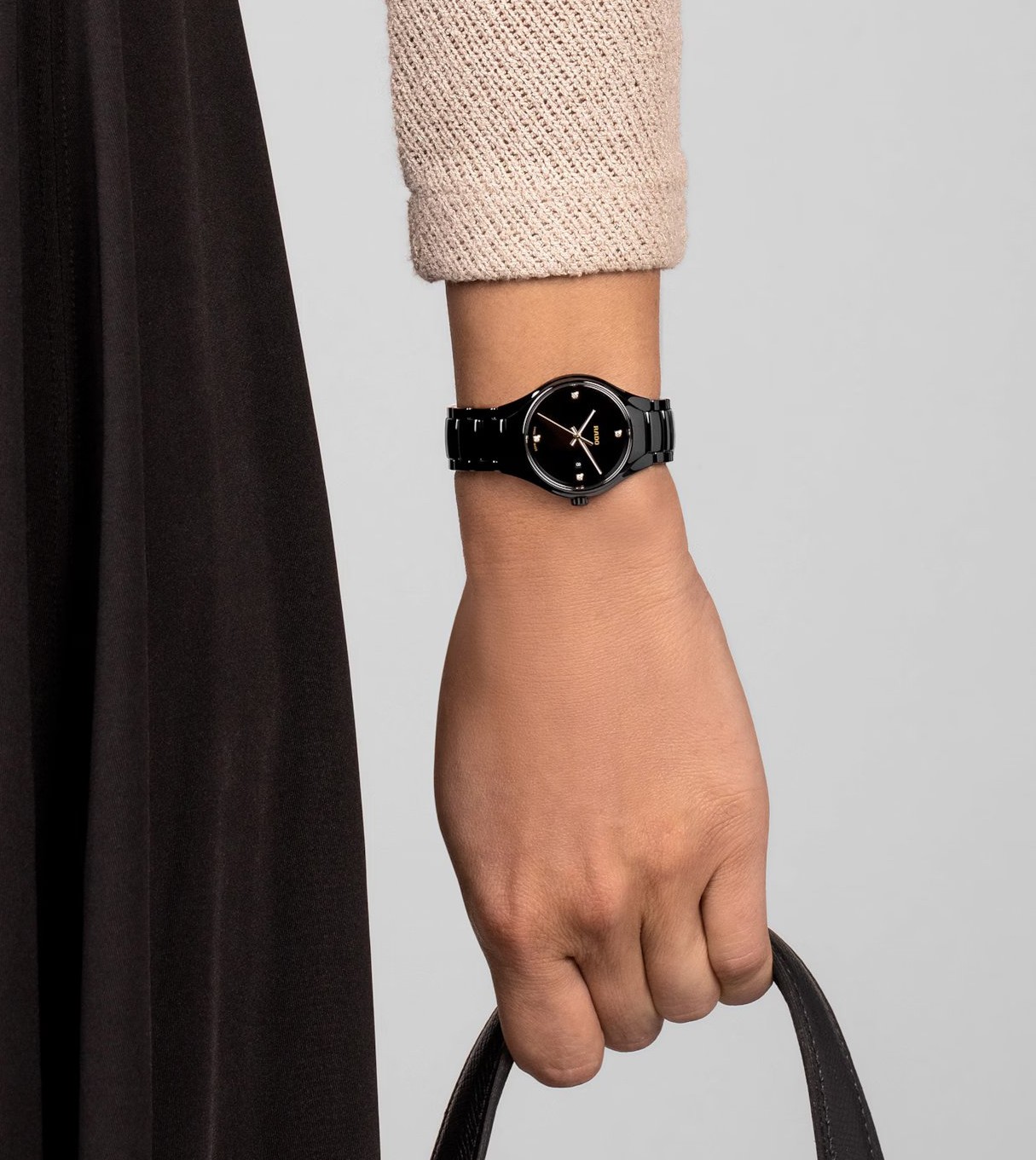 Kolekcja Rado True została na nowo wyobrażona i zaprojektowana dla współczesnych użytkowników, zachowując unikalny charakter marki i stanowiąc idealną całość wzbogaconą urokiem diamentów. Zastosowanie zaawansowanych materiałów sprawia, że zegarek zachowa swój połysk na długie lata, jednocześnie zapewniając użytkowniczce wyjątkową lekkość i komfort noszenia.
