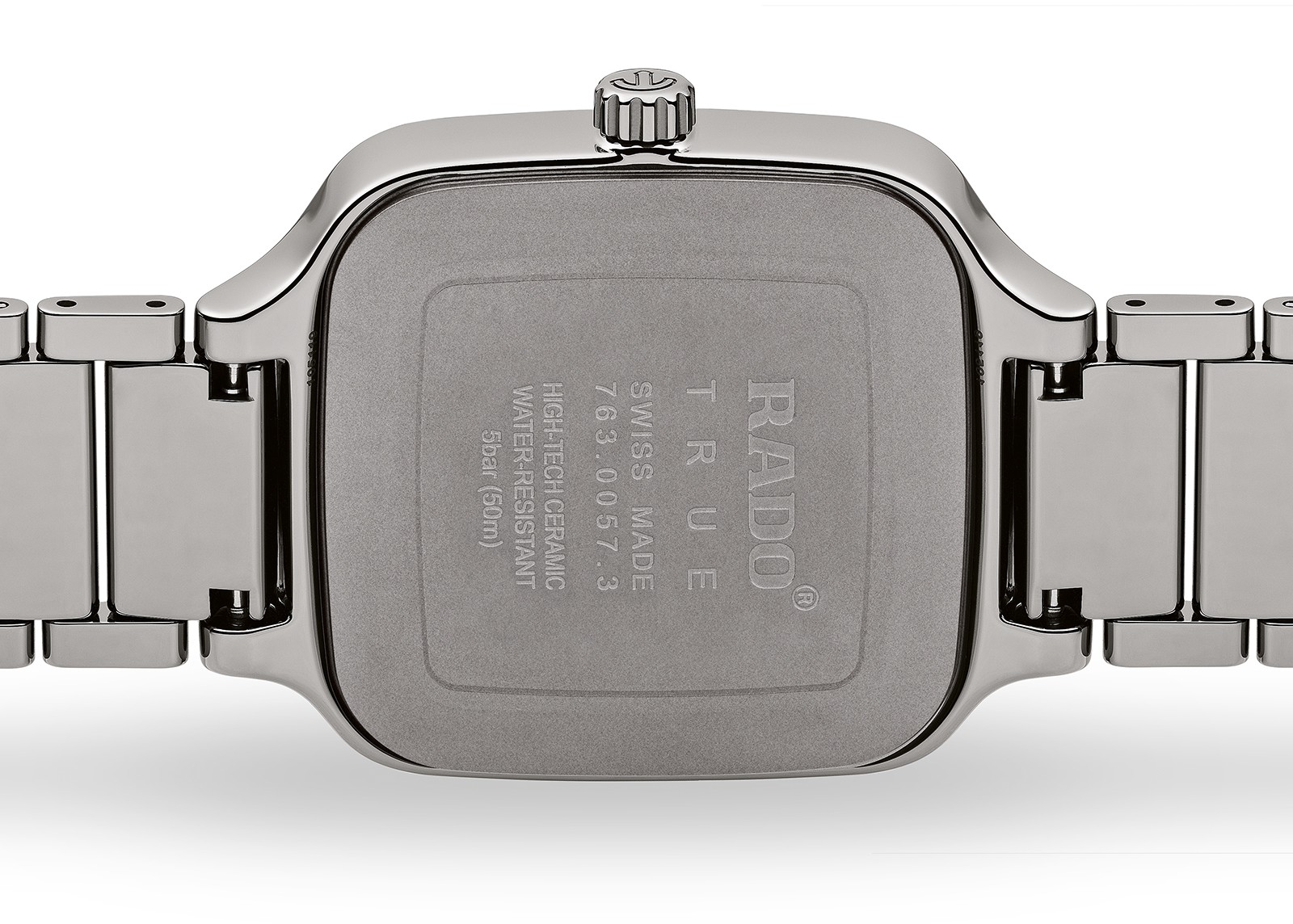Rado słynie z kwadratowych zegarków z ceramiki High-Tech. True Square to nowe spojrzenie na ten kultowy kształt i pierwszy zegarek Rado z kwadratową, formowaną wtryskowo kopertą typu monobloc z ceramiki High-Tech, dostępną w trzech rozmiarach i kilku wersjach kolorystycznych. Zastosowane materiały sprawiają, że zegarek jest lekki, wygodny i odporny na zarysowania, dzięki czemu zachowa swój wygląd przez lata.