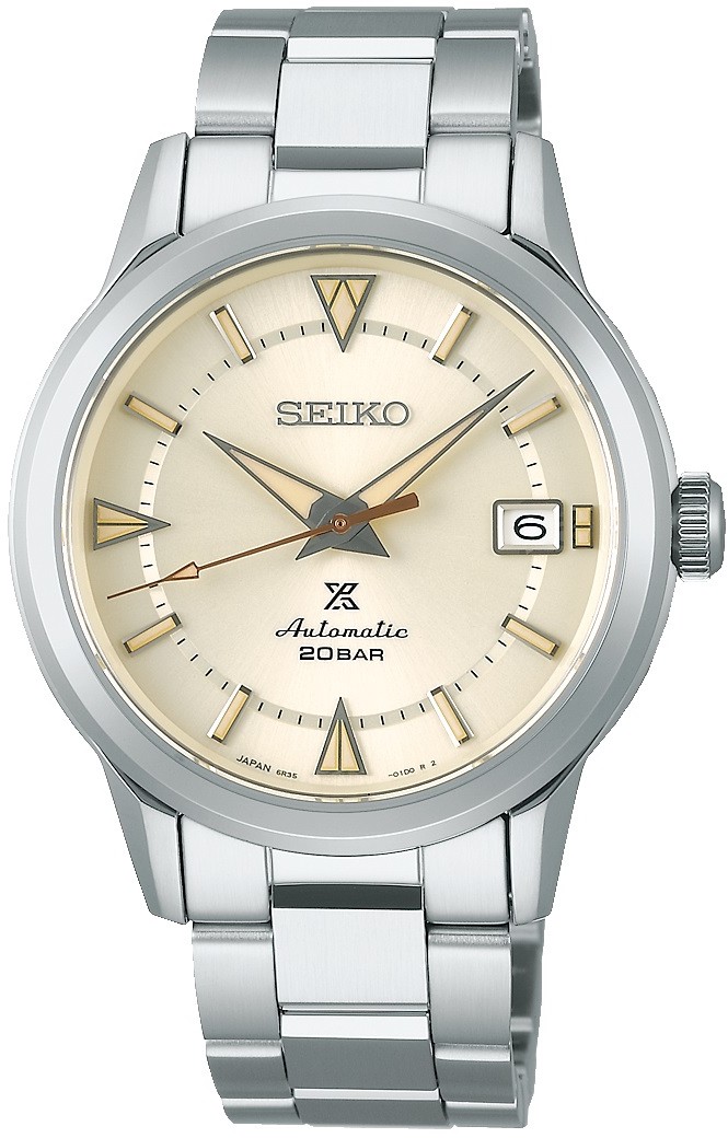 Męski automatyczny zegarek Seiko Prospex The 1959 Alpinist Modern Reinterpretation SPB241J1 na metalowej bransolecie ze składanym zapięciem. Koperta ze stali nierdzewnej z przezroczystym deklem ma średnicę 38 milimetrów, co sprawia, że jest to bardzo wygodny rozmiar, który pasuje na niemal każde nadgarstek. Jest to reedycja pierwszej wersji zegarka alpinistycznego Seiko Laurel Alpinist z 1959 roku. Tarcza w kolorze szampana z efektem słonecznym i datownikiem jest chroniona odpornym szkłem szafirowym z powłoką antyrefleksyjną. Zastosowane indeksy godzinowe, podobnie jak wskazówki, pokryte są powłoką luminescencyjną LumiBrite, która gwarantuje doskonałą czytelność w warunkach słabego oświetlenia. Zegarek napędzany jest mechanizmem 6R35 z naciągiem automatycznym i rezerwą chodu wynoszącą około 70 godzin. Ten manufakturowy mechanizm z funkcją hakowania można w razie potrzeby nakręcić również ręcznie za pomocą zakręcanej koronki. Wodoodporność zegarka wynosi 20 ATM i dlatego jest odpowiednim wyborem do pływania, snorkelingu, ale także głębokiego nurkowania do ok. 50 metrów.