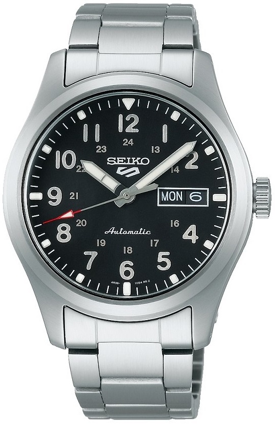 Automatyczny męski zegarek Seiko 5 Sports SRPG27K1 na metalowej bransolecie ze składanym zapięciem. Koperta ze stali nierdzewnej w połączeniu szczotkowania i polerowania ma średnicę 39,4 milimetra i przezroczysty dekiel. Czarna tarcza ze wskazaniem dnia i daty jest chroniona wytrzymałym szkłem Hardlex. Zastosowane indeksy godzinowe, podobnie jak wskazówki, pokryte są powłoką luminescencyjną LumiBrite, która gwarantuje doskonałą czytelność w warunkach słabego oświetlenia. Zegarek napędzany jest mechanicznym mechanizmem 4R36 z naciągiem automatycznym i rezerwą chodu wynoszącą około 41 godzin. Ten manufakturowy mechanizm z funkcją hakowania można w razie potrzeby nakręcić również ręcznie za pomocą koronki. Wodoodporność zegarka wynosi 10 ATM i dlatego nadaje się do pływania i snorkelingu.