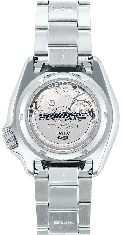 Seiko 5 Sports GUCCIMAZE Edycja limitowana SRPG65K1 Męski automatyczny zegarek na metalowej bransolecie. Jest to limitowana edycja 1500 sztuk na cały świat stworzona we współpracy z japońskim grafikiem GUCCIMAZE, który zaprojektował m.in. typografię cyfry 5 na składanym zapięciu. Oparta na kultowym modelu SKX007, koperta ze stali nierdzewnej w połączeniu z matem i połyskiem ma średnicę 42,5 milimetra i przezroczysty dekiel. Tarcza pokryta wytrzymałym szkłem Hardlex ma specjalny design inspirowany naniesionymi literami „Seiko” ze wskazaniem dnia i daty. Zastosowane indeksy godzinowe, podobnie jak wskazówki, pokryte są czarną luminescencyjną powłoką LumiBrite, która gwarantuje doskonałą czytelność w warunkach słabego oświetlenia. Zegarek wyposażony jest w jednokierunkowo obracający się lunetę z aluminiową wkładką. Zegarek napędzany jest mechanicznym mechanizmem 4R36 z naciągiem automatycznym i rezerwą chodu wynoszącą około 41 godzin. Ten manufakturowy mechanizm z funkcją hakowania można w razie potrzeby nakręcić również ręcznie za pomocą koronki. Wodoodporność zegarka wynosi 10 ATM i dlatego nadaje się do pływania i snorkelingu. Zegarek dostarczany jest w specjalnym opakowaniu, które zawiera również oryginalne naklejki.