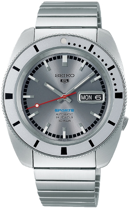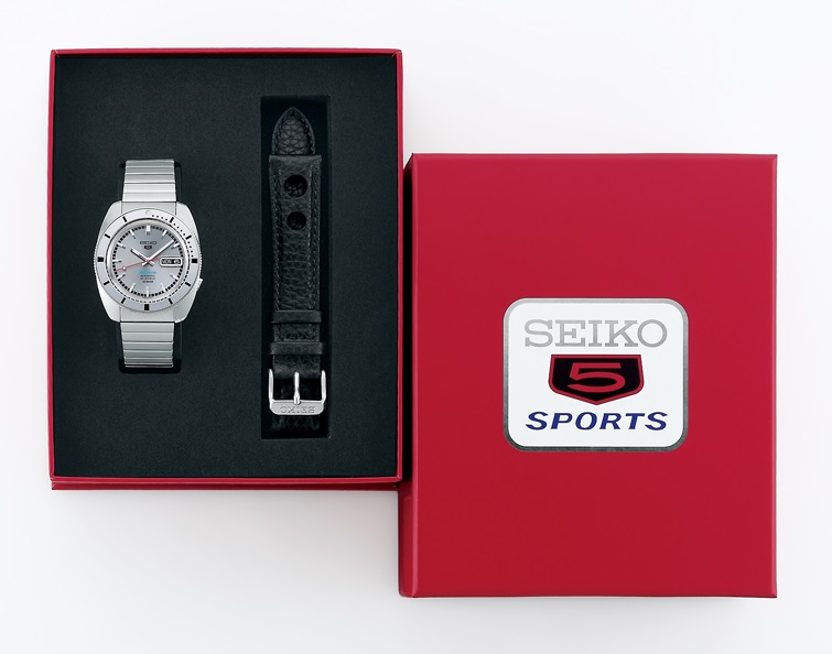 Kolekcja Seiko 5 Sports nawiązuje do popularnego projektu zegarków Seiko, który był popularny na całym świecie pod koniec lat 60. i na początku 70. XX wieku. Wznowiona na nowo konstrukcja, której wielkość i kształt są jak najbardziej zbliżone do oryginału, napędzana jest sprawdzonym i niezawodnym mechanizmem automatycznym 4R36 z rezerwą chodu na poziomie 41 godzin. Ta limitowana edycja 9999 sztuk na całym świecie stanowi idealną równowagę pomiędzy nostalgicznym designem oryginału a dzisiejszą nowoczesną technologią zegarmistrzowską. Na srebrnej tarczy widnieje oryginalne logo Seiko 5 na godzinie 12, a na godzinie 6 widnieje niebieski napis „SPORTS”. Oczywiście na godzinie 3 znajduje się datownik i dzień tygodnia. Wskazówki i indeksy pokryte Lumibrite zapewniają doskonałą czytelność w ciemności. Nowo powstała bransoleta posiada ulepszoną i solidną konstrukcję. Niemniej jednak jego podobieństwo do historycznego oryginału jest łatwo widoczne i stanowi kolejny szczegół konstrukcyjny, który mocno zakotwicza estetykę zegarka na początku historii Seiko 5 Sports. Do zegarka dołączony jest zamienny sportowy skórzany pasek w stylu retro w specjalnie zaprojektowanym pudełku, które przywołuje atmosferę vintage z czasów, gdy narodził się oryginalny zegarek sportowy Seiko 5.