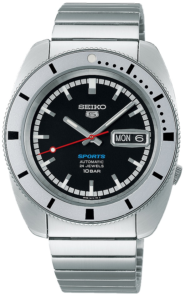 Kolekcja Seiko 5 Sports nawiązuje do popularnego projektu zegarków Seiko, który był popularny na całym świecie pod koniec lat 60. i na początku 70. XX wieku. Wznowiona na nowo konstrukcja, której wielkość i kształt są jak najbardziej zbliżone do oryginału, napędzana jest sprawdzonym i niezawodnym mechanizmem automatycznym 4R36 z rezerwą chodu na poziomie 41 godzin. Ta limitowana edycja 9999 sztuk na całym świecie stanowi idealną równowagę pomiędzy nostalgicznym designem oryginału a dzisiejszą nowoczesną technologią zegarmistrzowską. Na czarnej tarczy na godzinie 12 widnieje oryginalne logo Seiko 5, a na godzinie 6 widnieje niebieski napis „SPORTS”. Oczywiście na godzinie 3 znajduje się datownik i dzień tygodnia. Wskazówki i indeksy pokryte Lumibrite zapewniają doskonałą czytelność w ciemności. Nowo powstała bransoleta posiada ulepszoną i solidną konstrukcję. Niemniej jednak jego podobieństwo do historycznego oryginału jest łatwo widoczne i stanowi kolejny szczegół konstrukcyjny, który mocno zakotwicza estetykę zegarka na początku historii Seiko 5 Sports. Do zegarka dołączony jest zamienny sportowy skórzany pasek w stylu retro w specjalnie zaprojektowanym pudełku, które przywołuje atmosferę vintage z czasów, gdy narodził się oryginalny zegarek sportowy Seiko 5.