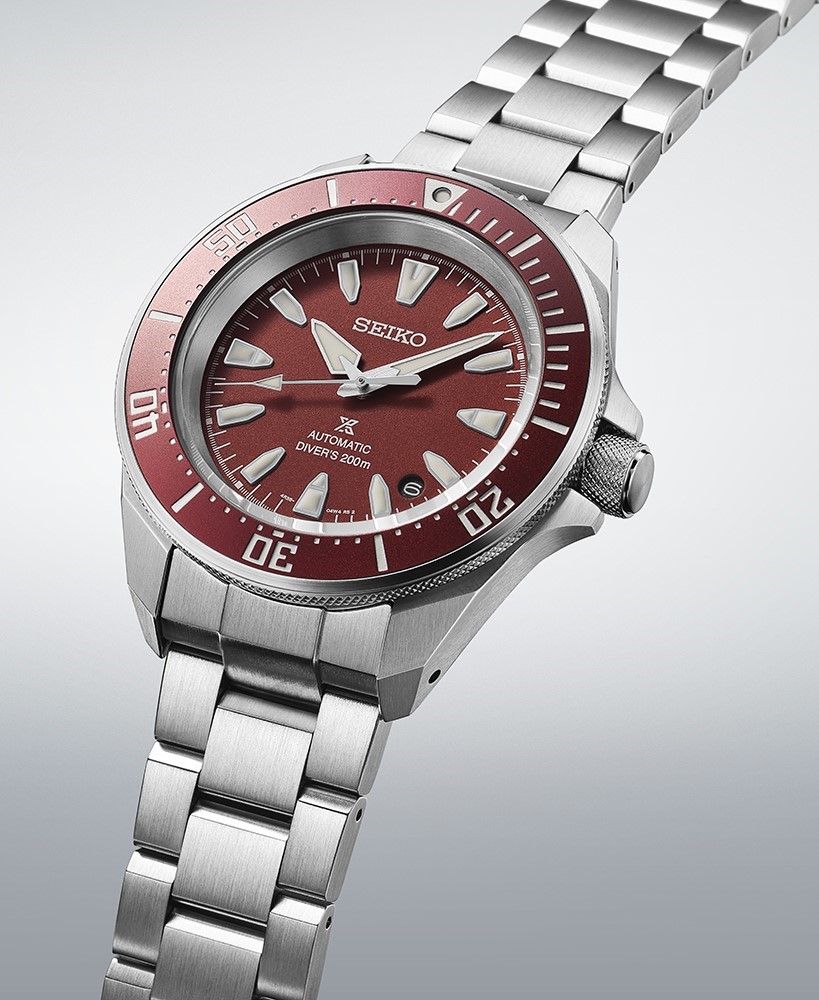 Męski automatyczny zegarek Seiko SRPL11K1 na stalowej bransolecie ze składanym zapięciem i blokadą bezpieczeństwa zwalnianą przyciskiem. Zapięcie zawiera przedłużkę bransolety, co jest szczególnie praktyczne w przypadku nurkowania. Koperta ze stali nierdzewnej w połączeniu szczotkowania i polerowania ma średnicę 41,7 milimetra i dwukierunkowym obrotowym pierścieniem. Czerwona tarcza ze wskazaniem daty jest chroniona wytrzymałym szkłem hardlex. Zastosowane indeksy godzinowe, podobnie jak wskazówki, pokryte są powłoką luminescencyjną LumiBrite, która gwarantuje doskonałą czytelność w warunkach słabego oświetlenia. Zegarek napędzany jest mechanizmem 4R35 z naciągiem automatycznym i rezerwą chodu wynoszącą około 41 godzin. Ten manufakturowy mechanizm z funkcją hakowania można w razie potrzeby nakręcić również ręcznie za pomocą zakręcanej koronki. Zegarek jest wodoodporny do 20 ATM i jest odpowiednim wyborem do snorkelingu i nurkowania.