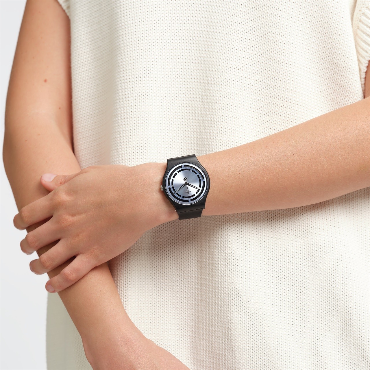Materiał, z którego wykonana jest koperta zegarka, to połączenie ceramiki i plastiku pochodzenia biologicznego.