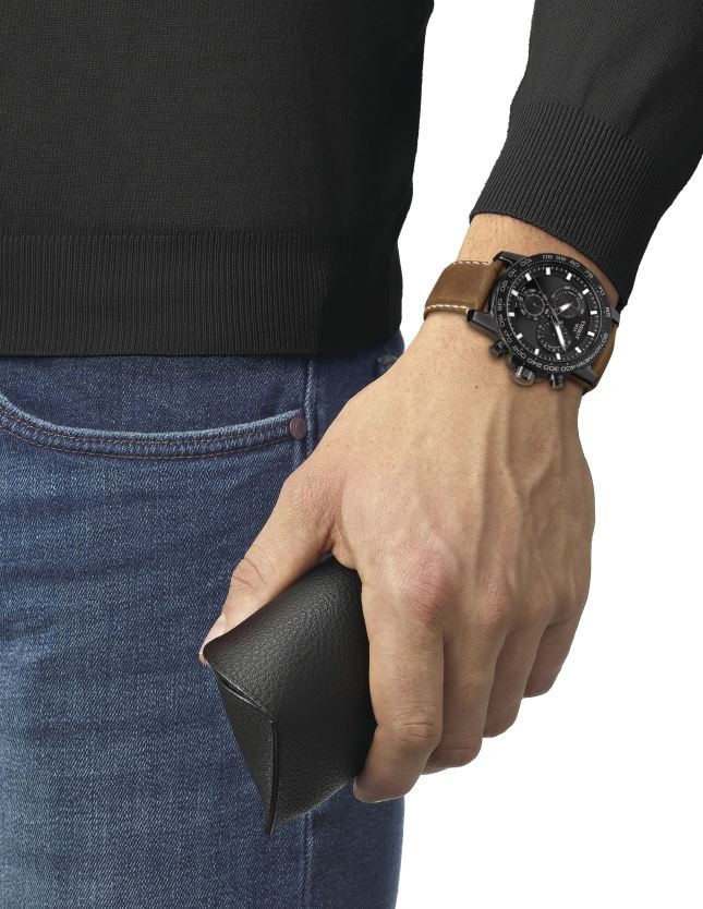 W kolekcji Supersport, Tissot oferuje przede wszystkim nowoczesne chronografy sportowe dla miłośników większych zegarków. Zegarek ten inspirowany jest rugby, nic więc dziwnego, że częścią jego bardziej surowej koncepcji jest stalowa koperta o średnicy 45,5 milimetra i tarcza w ciemnych kolorach, która jednak jest doskonale czytelna nawet po zmroku dzięki luminescencji Super-LumiNova® na indeksach i wskazówkach.