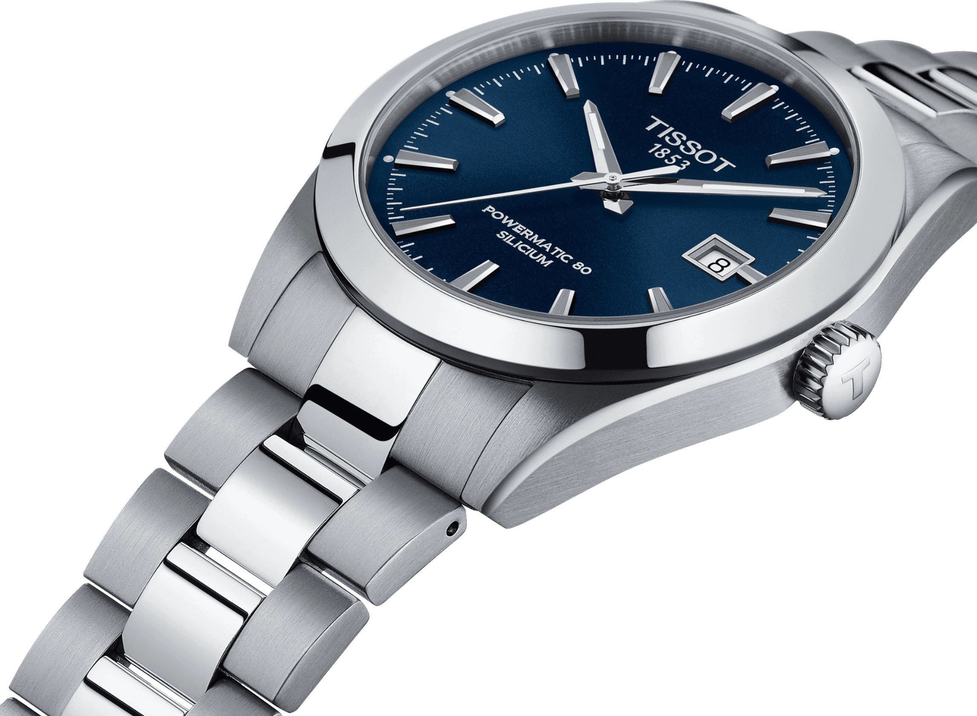 Tissot Gentleman Powermatic 80 Silicium T127.407.11.041.00 to męski zegarek automatyczny na stalowej bransolecie w połączeniu szlifu i połysku z zapięciem motylkowym. Koperta ze stali nierdzewnej ma średnicę 40 milimetrów i przezroczysty dekiel. Niebieską tarczę ze szlifem słonecznym i wskazaniem daty chroni trwałe szkło szafirowe z powłoką antyrefleksyjną. Zastosowane indeksy godzinowe, podobnie jak wskazówki, pokryte są powłoką luminescencyjną Super-LumiNova®, która gwarantuje doskonałą czytelność w warunkach słabego oświetlenia. Zegarek napędzany jest mechanizmem Powermatic 80.811 z naciągiem automatycznym i rezerwą chodu na poziomie około 80 godzin, który posiada funkcję hakowania (zatrzymywanie wskazówka sekundowa, gdy koronka jest wyciągnięta do skrajnych pozycji), a w razie potrzeby można ją również nakręcić ręcznie za pomocą koronki. Dzięki zastosowaniu krzemowego, antymagnetycznego włosia w kole zamachowym, kaliber ten charakteryzuje się dużą odpornością na działanie pola magnetycznego. Dzięki wodoszczelności 10 ATM zegarek nadaje się do pływania i snorkelingu.