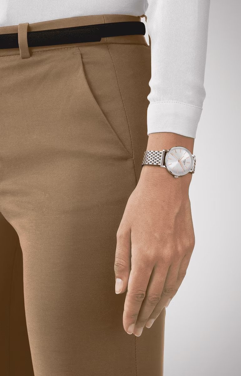 Absolutnie czysty design to główna cecha serii zegarków Tissot Everytime. Oprócz optycznie lekkiej obudowy modele te mają również cienkie i prosto wyprofilowane uszy. Całość wygląda bardzo minimalistycznie. Dostępnych jest kilka wariantów kolorystycznych. Niedrogie modele Everytime mają głównie napęd kwarcowy, ale dostępne są również warianty z mechanicznym mechanizmem Swissmatic.