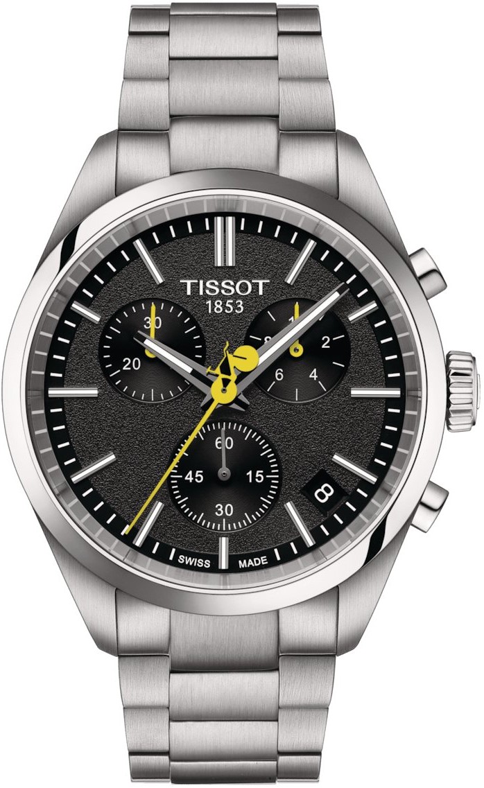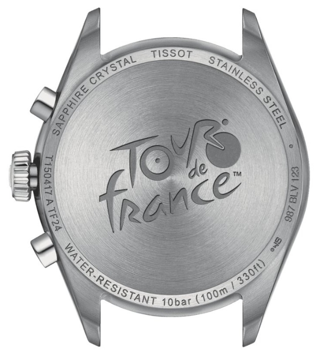 Tissot PR 100 Tour de France Edition 2024 T150.417.11.051.00 to męski zegarek na bransolecie ze szczotkowanej stali z zapięciem motylkowym. Koperta ze stali nierdzewnej ma średnicę 40 milimetrów. Jest to edycja nawiązująca do współpracy marki z najpopularniejszym na świecie wyścigiem kolarskim Tour de France, którego logo zdobi dekiel koperty zegarka. Na tarczy w kolorze asfaltowej czerni inspirowanej drogą wyróżniają się wskazówki chronografu w kultowym żółtym kolorze, a przede wszystkim środkowa wskazówka sekundowa wykończona motywem koła wyścigowego.