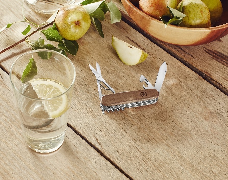 Funkcjonalny i elegancki – szwajcarski nóż oficerski Huntsman Wood oferuje 13 podstawowych funkcji wbudowanych w zgrabne okładki wykonane z eleganckiego i solidnego drewna drzewa orzechowego