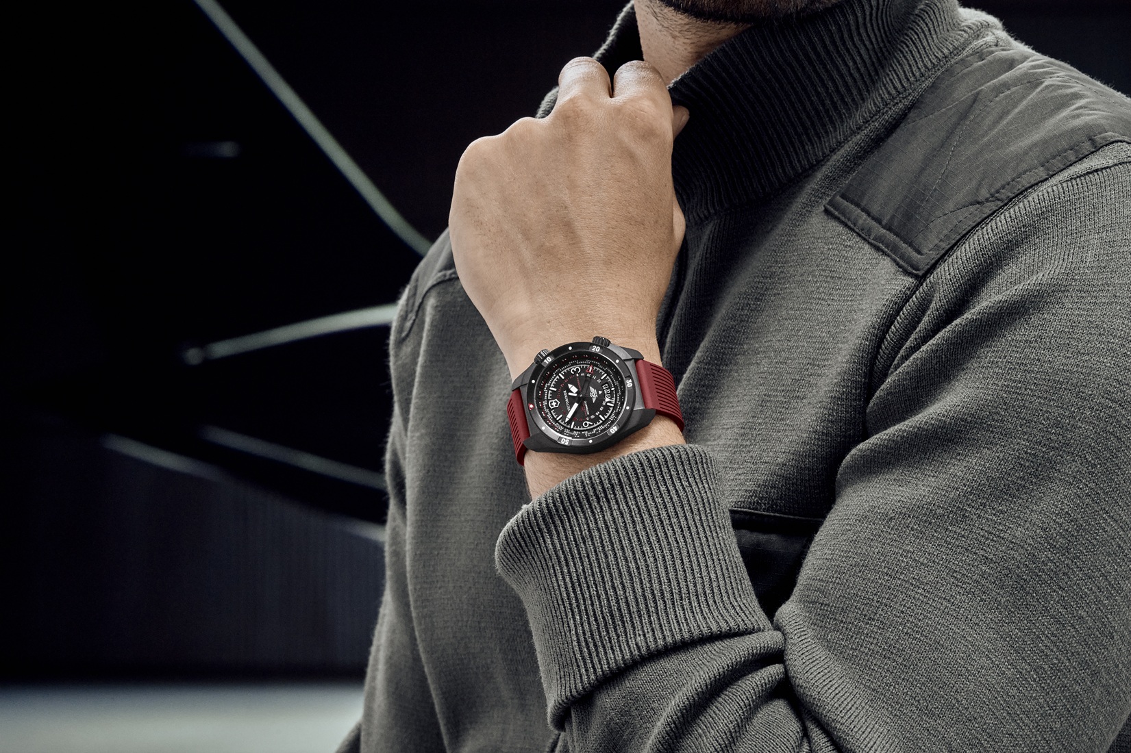 Posiada dwie koronki: zakręcaną na godzinie 4 do wskazywania czasu i koronkę na godzinie 2 do funkcji GMT. Zegarek Air Pro oferuje doskonałą czytelność nawet w ciemności dzięki charakterystycznym wskazówkom i indeksom wypełnionym masą luminescencyjną Super-LumiNova®. Dzięki odporności na wstrząsy i wodoodporności zgodnej z normą ISO, zegarek ten jest gotowy na każdą aktywność.