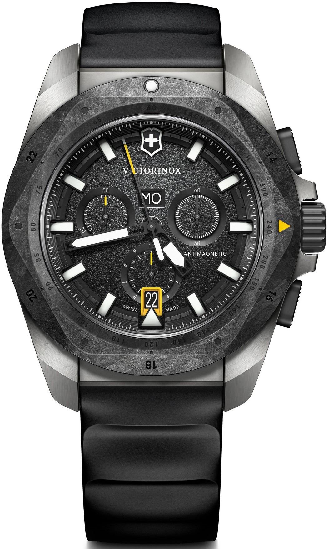 Kiedy dąży się do doskonałości we wszystkich dziedzinach życia, skupienie jest niezbędne, by pozostać na właściwej drodze. Victorinox I.N.O.X. Chrono z mechanizmem kwarcowym to niezrównany czasomierz, którego cechuje bezkompromisowość w kwestii jakości i precyzji. Tytanowa koperta i karbonowy bezel szwajcarskiej produkcji zapewniają bezbłędną dokładność, a wyrazista geometryczna sylwetka emanuje subtelną pewnością siebie.