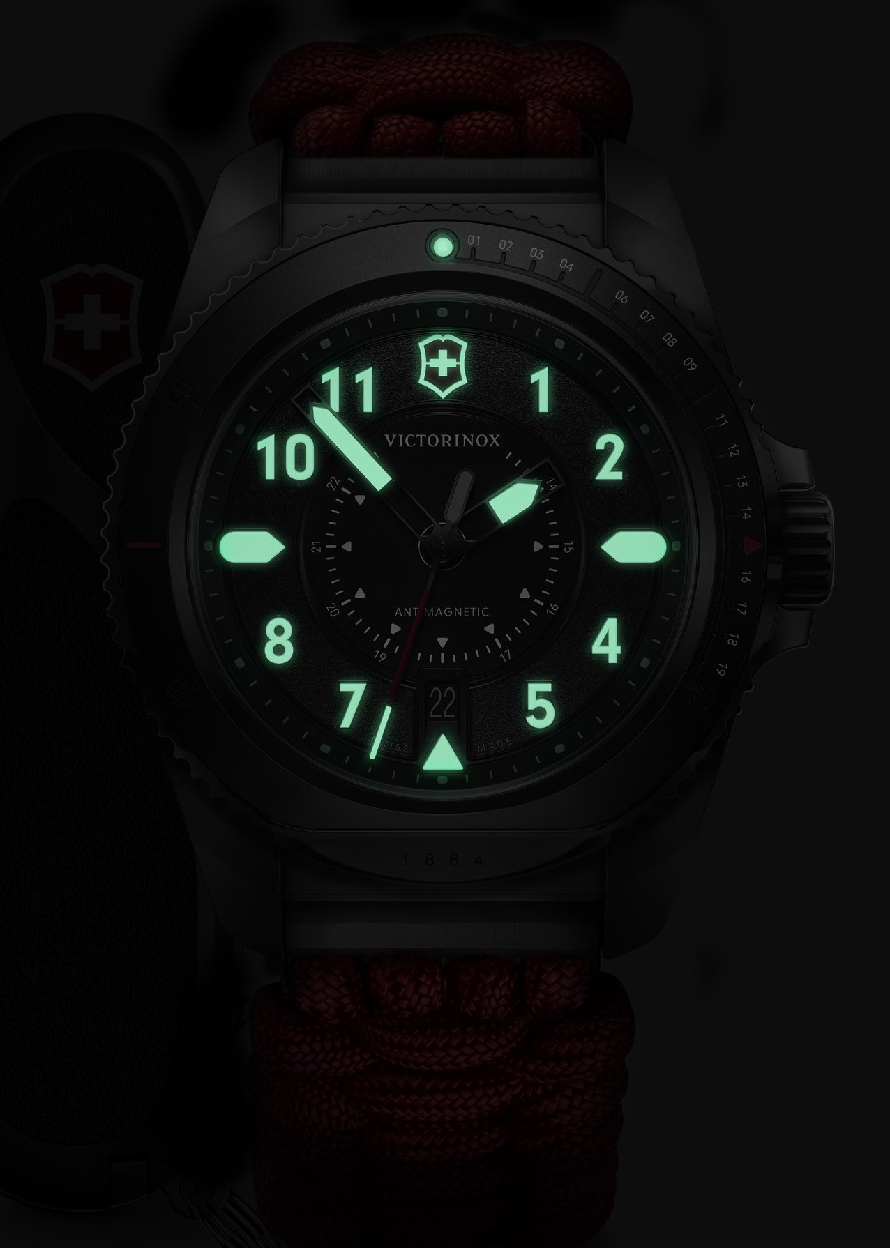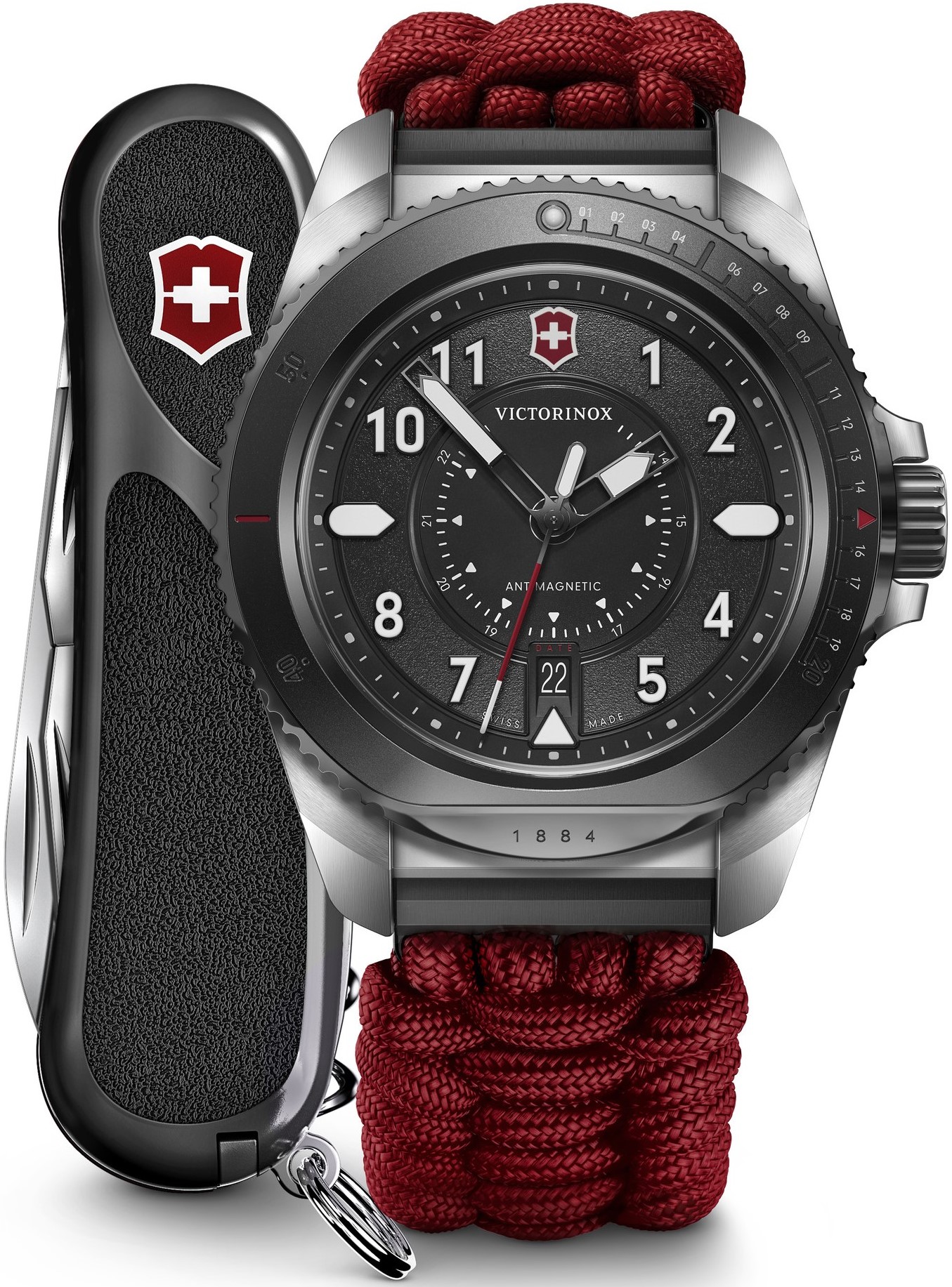 Każdy indywidualnie numerowany zegarek jest dostarczany ze szwajcarskim scyzorykiem, dodatkowym kauczukowym paskiem i portfelem na akcesoria, a wszystko to w specjalnym opakowaniu, które idealnie nadaje się na prezent lub przedmiot kolekcjonerski. Podróż pełna przygód – w szwajcarskim stylu.